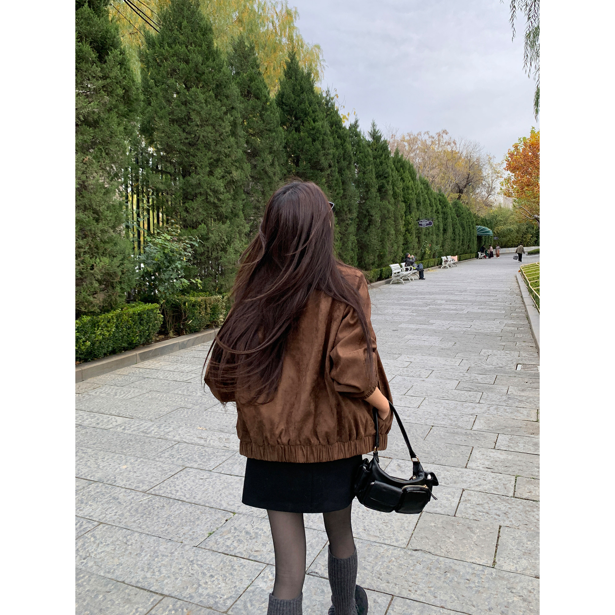 aaaaxbbb 小众时髦两色皮衣短款 夹克上衣垫肩外套女春款 胡桃手信