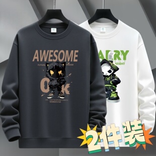2件装 卫衣套头圆领长袖 T恤薄款 宽松上衣青年外套潮 加绒加厚男士