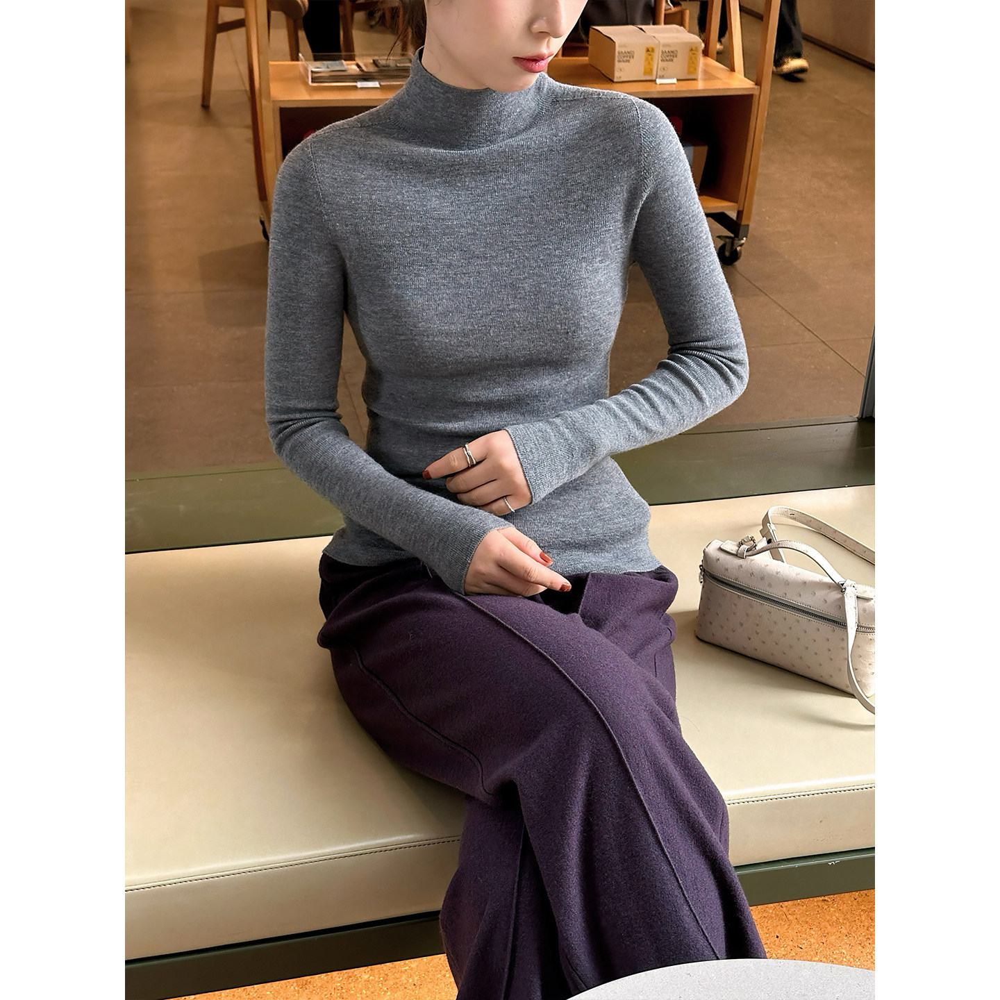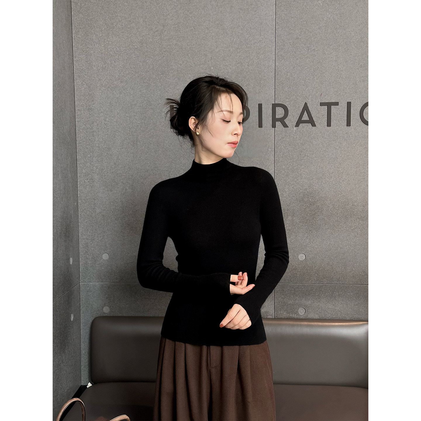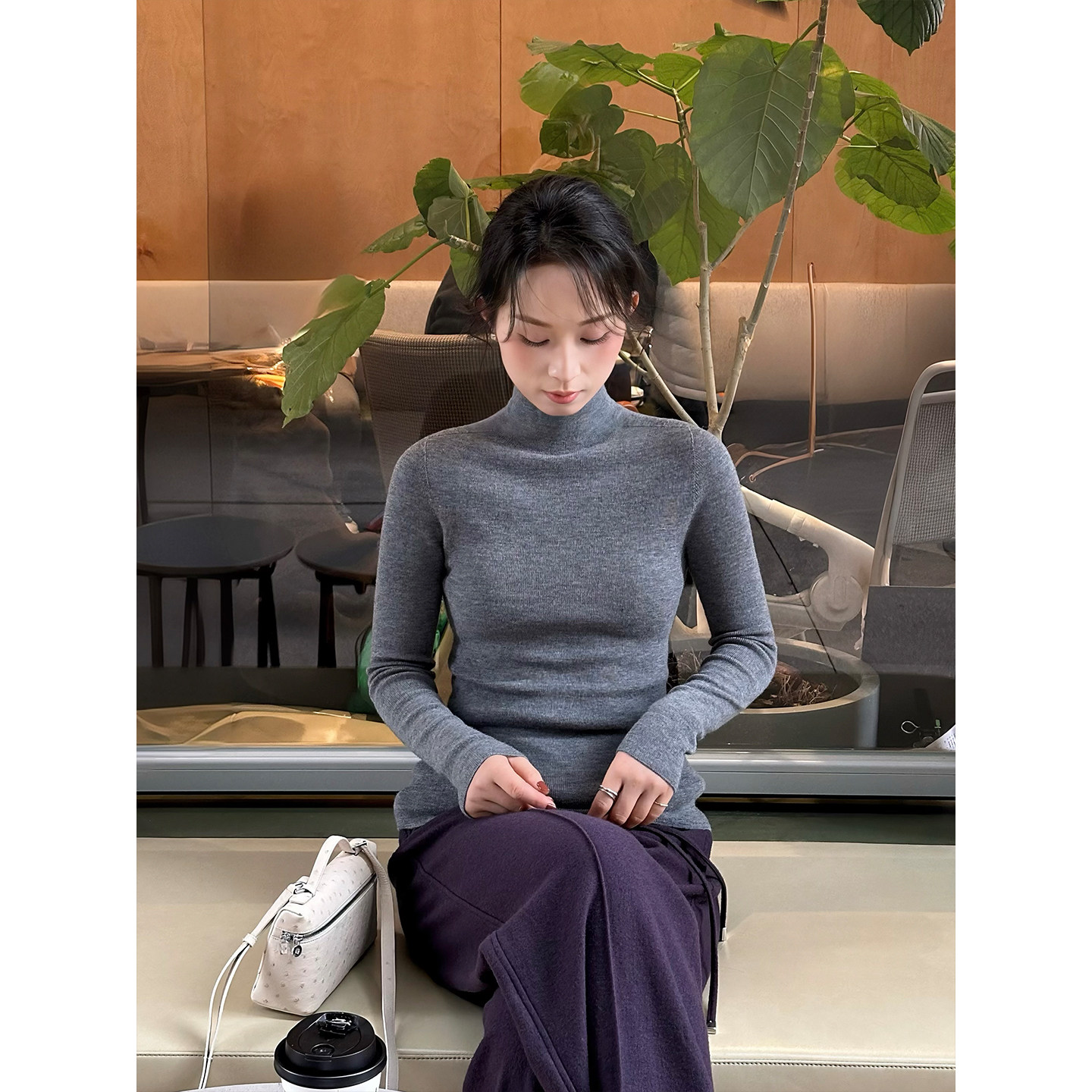 行业稀缺68支100%精纺山羊绒半高领针织打底衫 匠心至纯 ALIN由