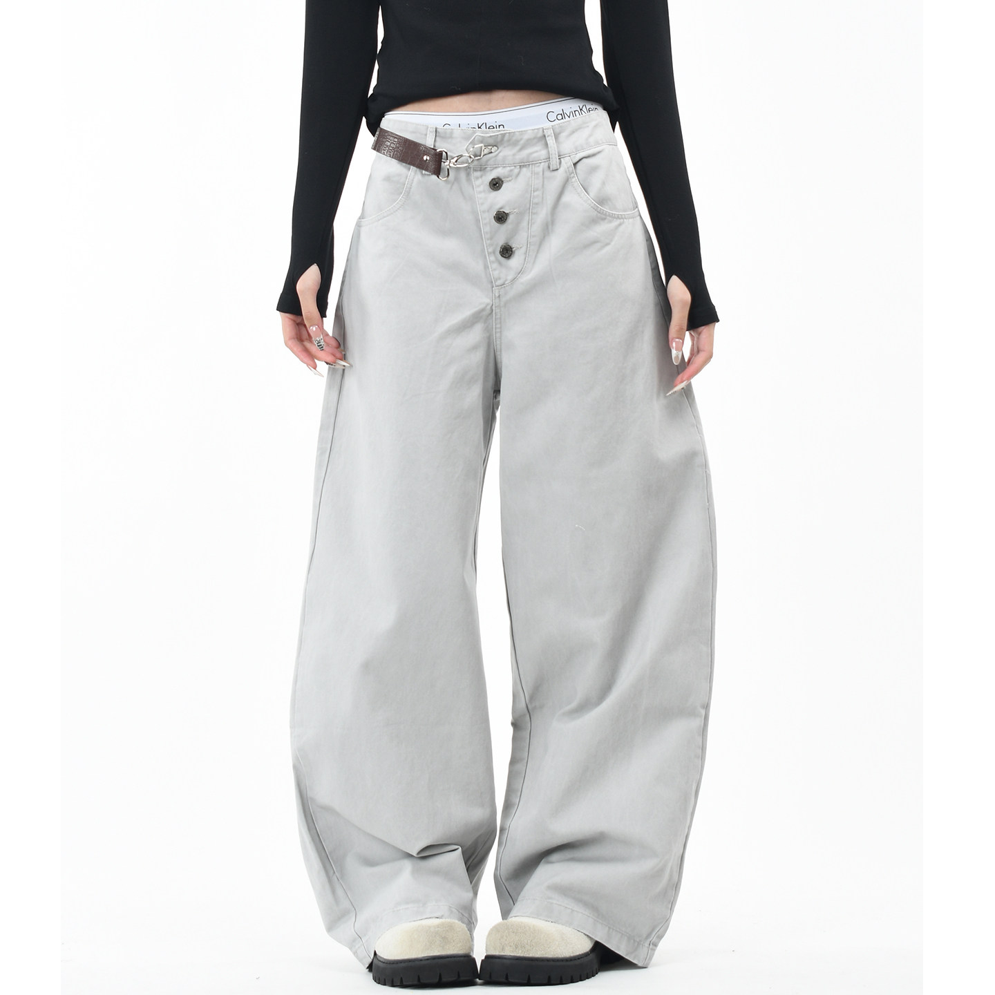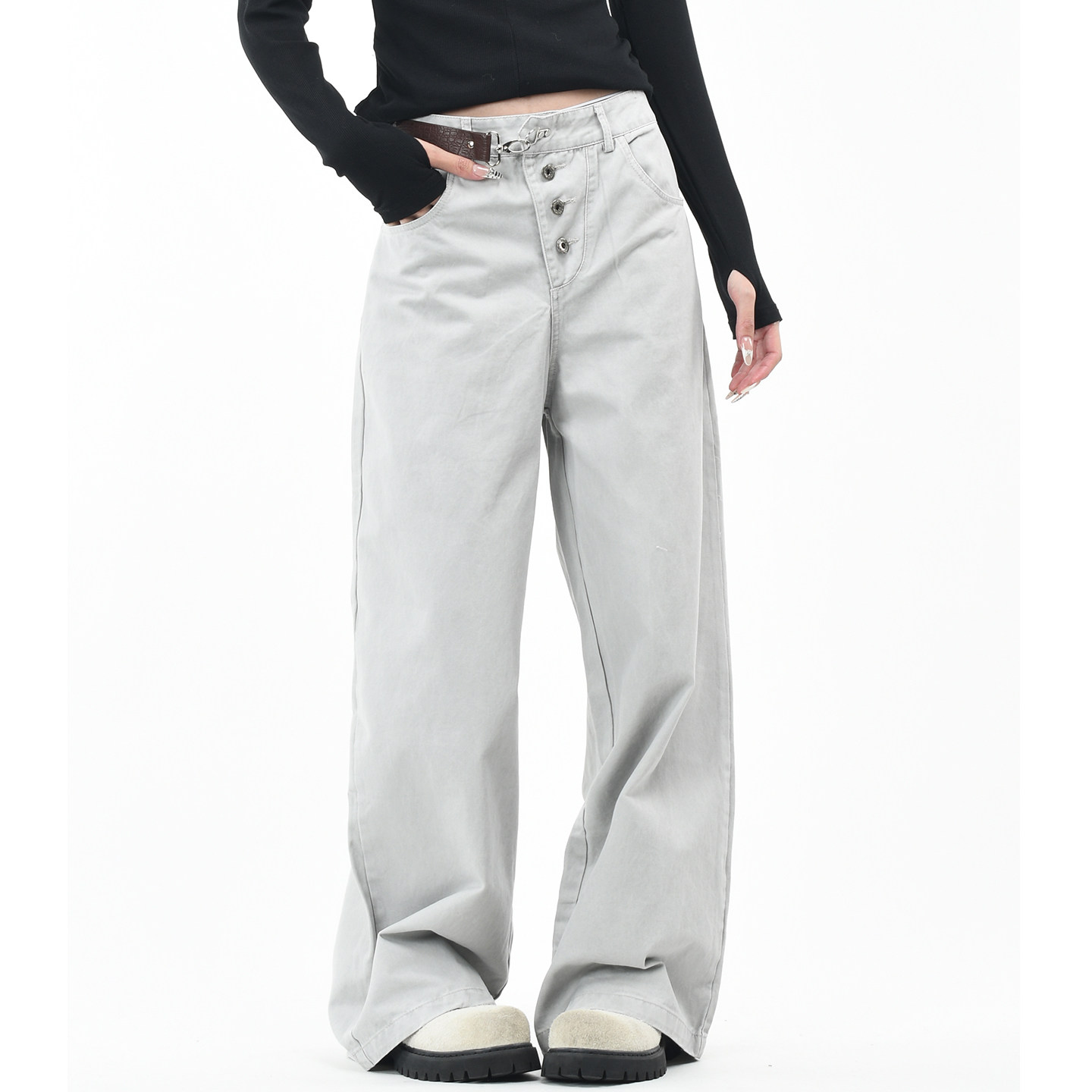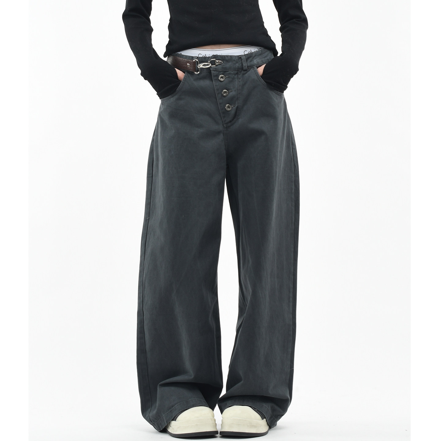OV原创美式 裤 男女小众设计宽松阔腿休闲长裤 复古排扣设计水洗工装由