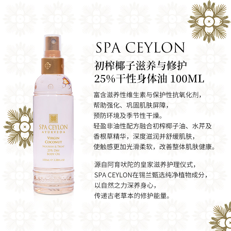 CEYLON初榨椰子油25%防干燥身体油轻盈滋润身体护理油100ML SPA由