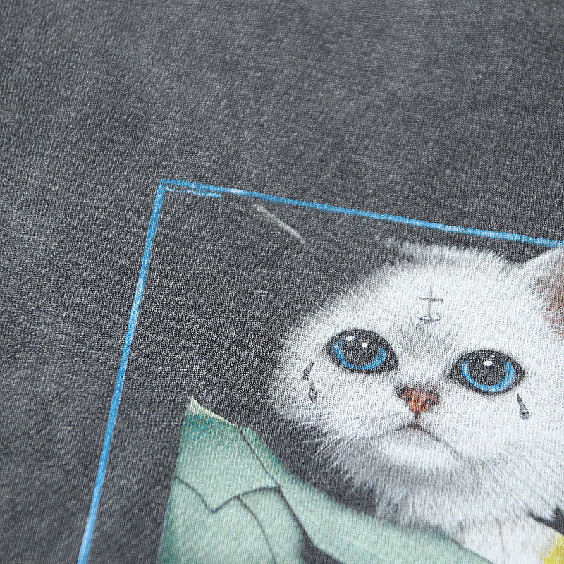 美国潮牌RIPNDIP贱猫中指猫纯棉做旧短袖 T恤光碟猫卡通男女情侣款由
