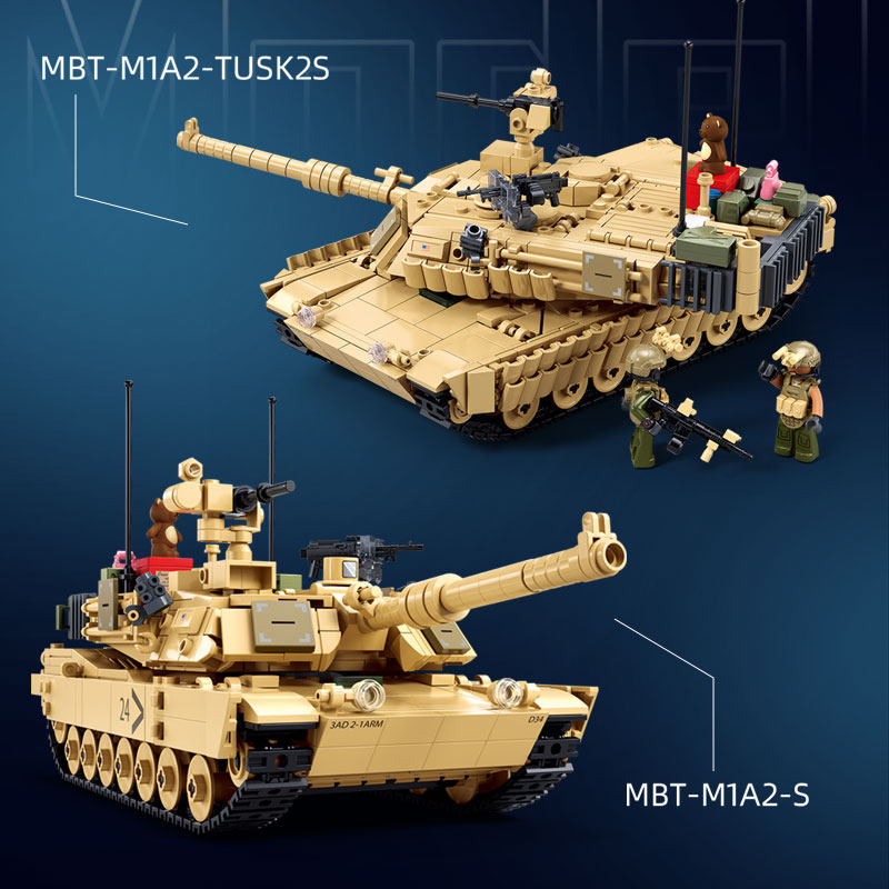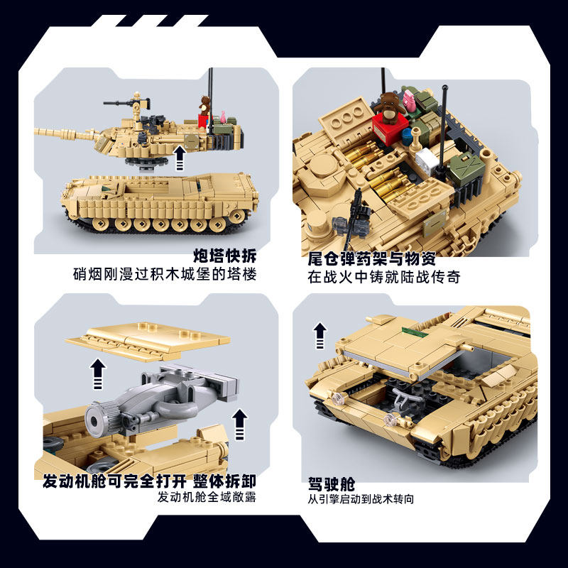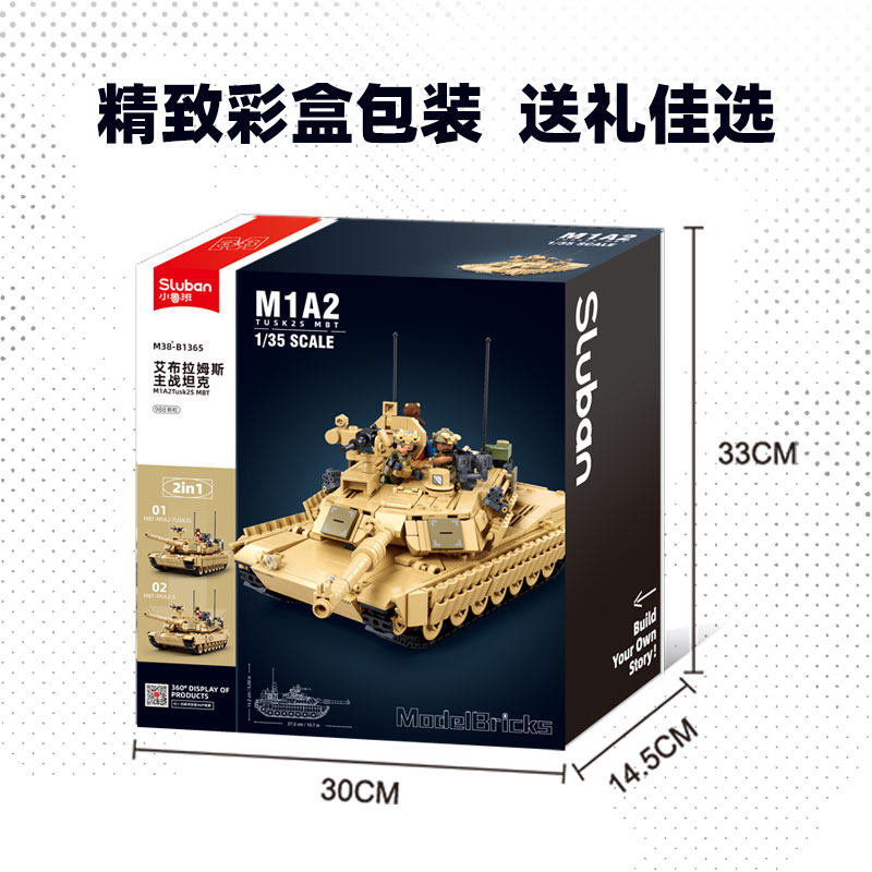 小鲁班M1A2主战坦克拼装 坦克军事玩具生日礼物 积木模型99A100式