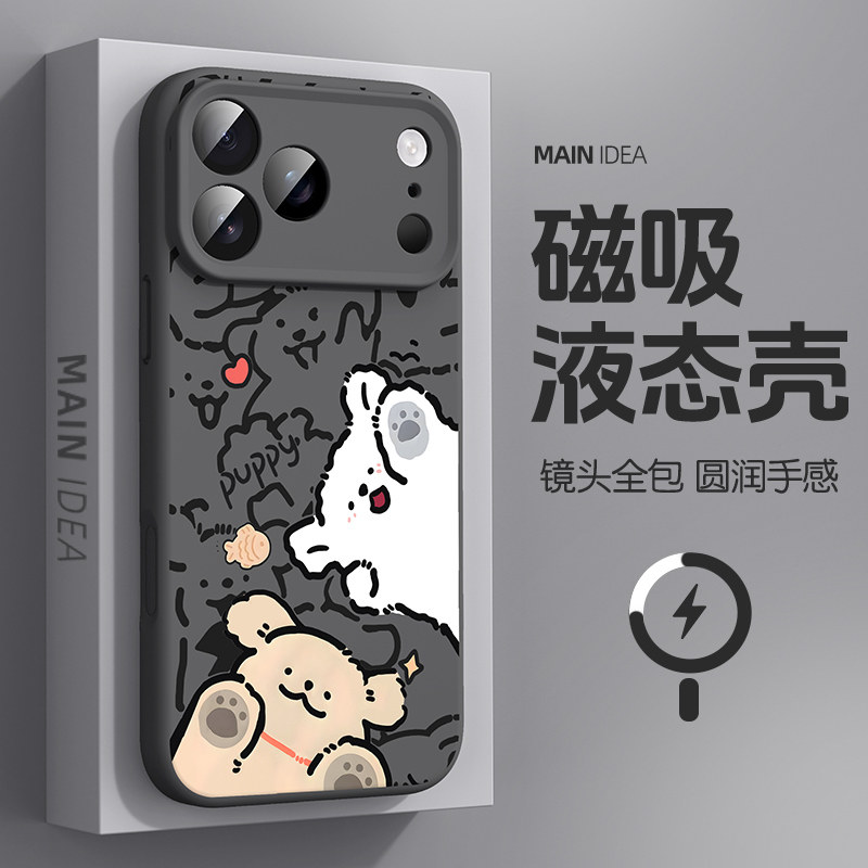 16pro情侣ip15液态硅胶14puls软壳13全包防摔12pm保护套 适用于苹果iphone17手机壳17promax可爱小狗air磁吸款