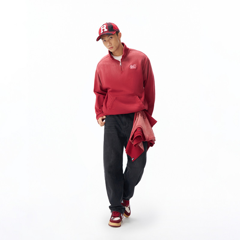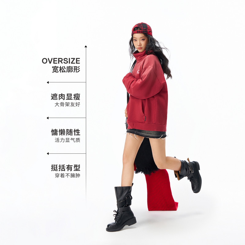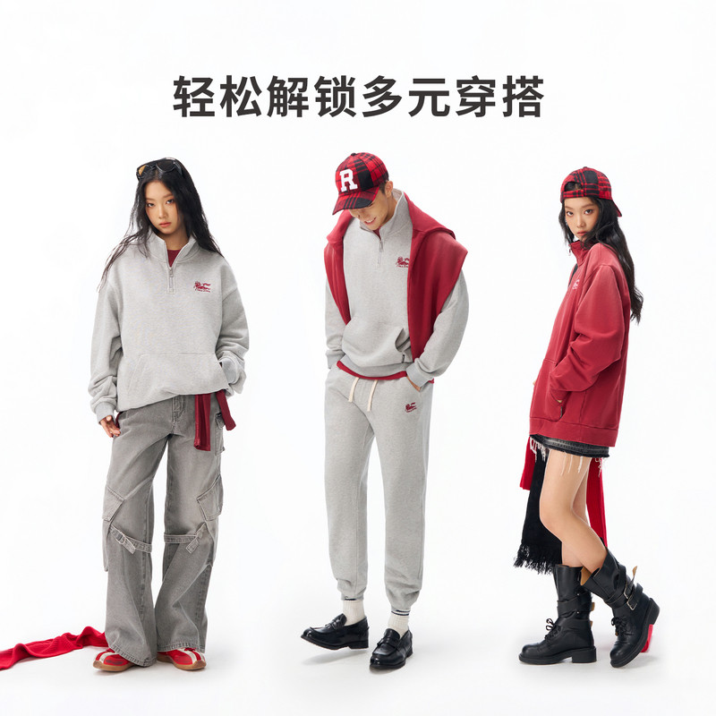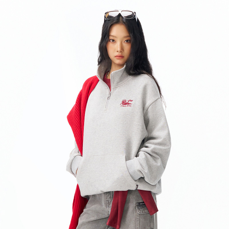 红色26春季 ABLE JEANS宽松立领半拉链卫衣情侣款 马年新年装 女 新款