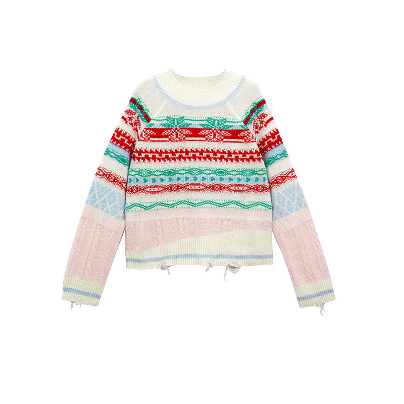 为您提供商品节日费尔岛羊绒衫 彩色毛衣上衣女士 CHAU.RISING2025秋冬新款 洲升的详细介绍,