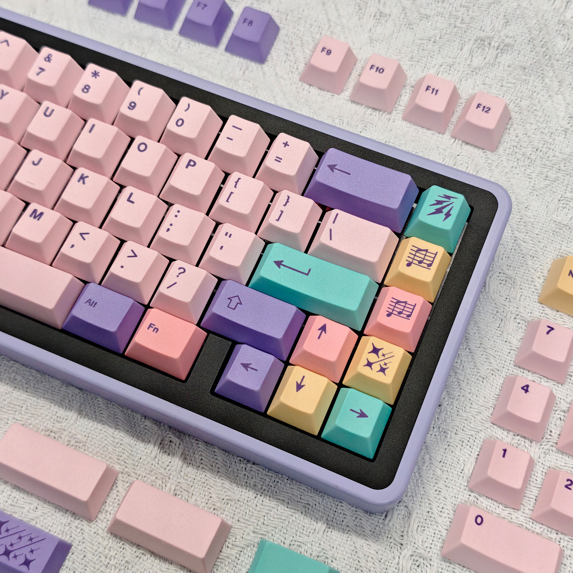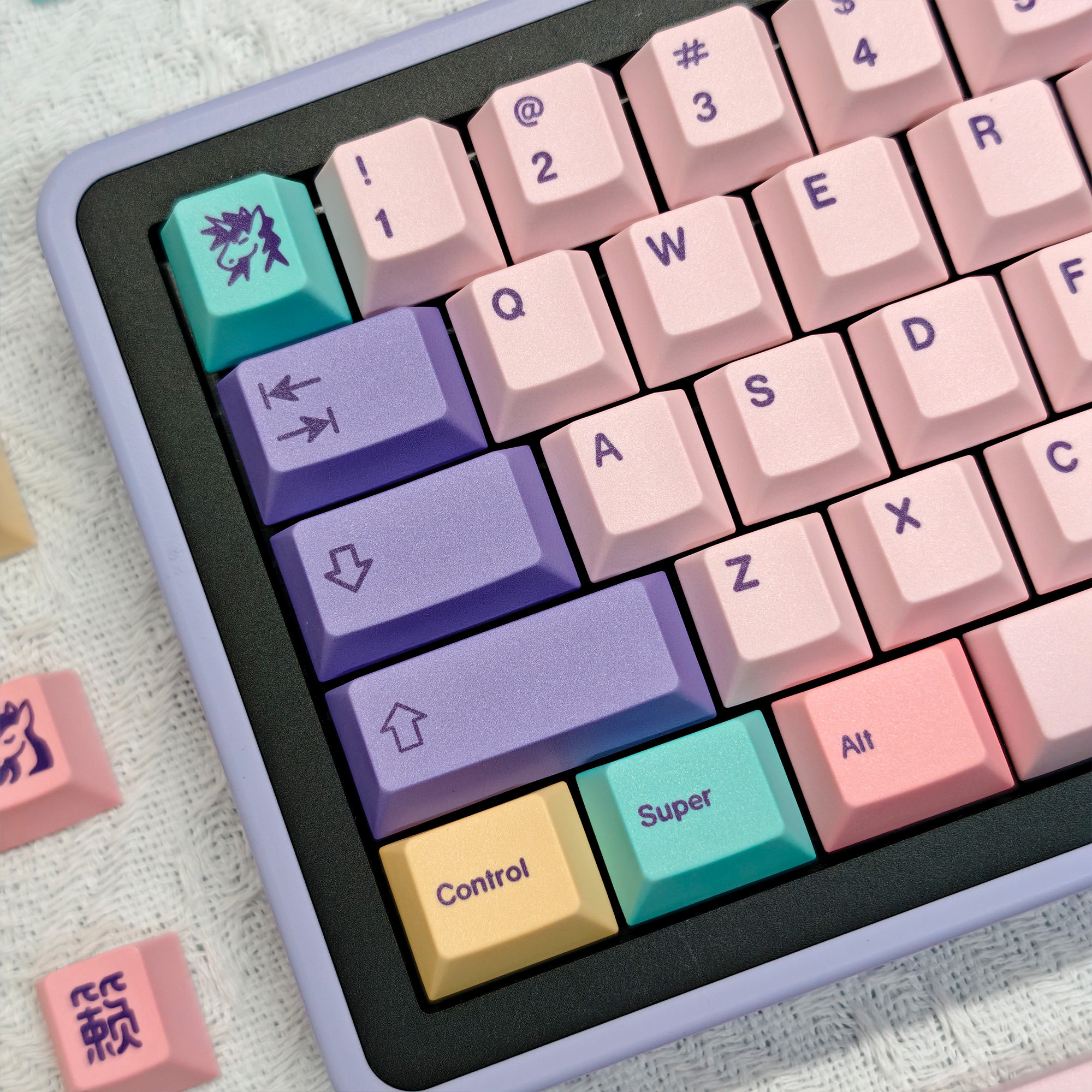 梦键星空独角兽键帽粉紫配色143键大全套PBT热升华用于机械键盘