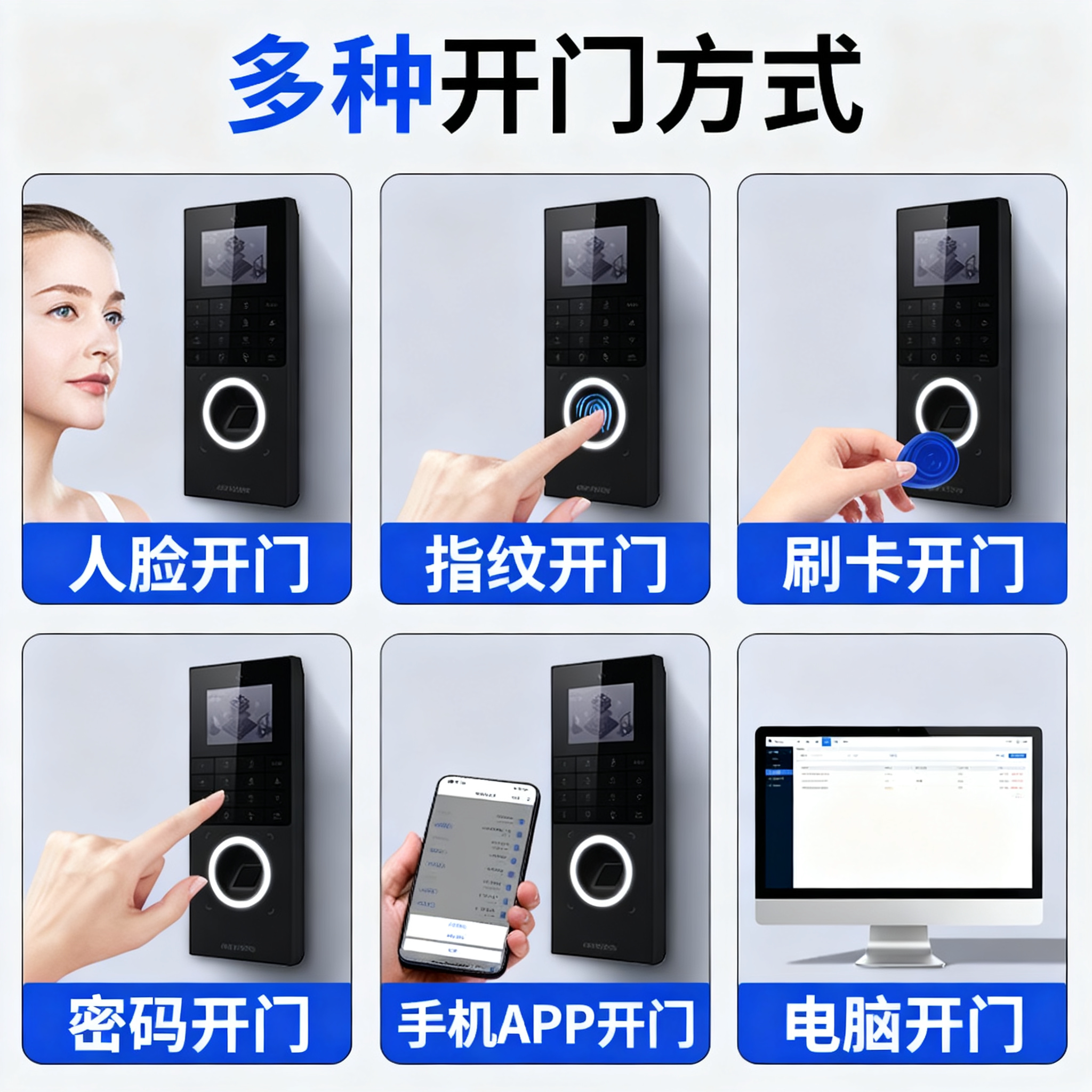 人脸识别门禁系统一体机指纹刷卡密码 电磁锁办公室刷脸考勤套装