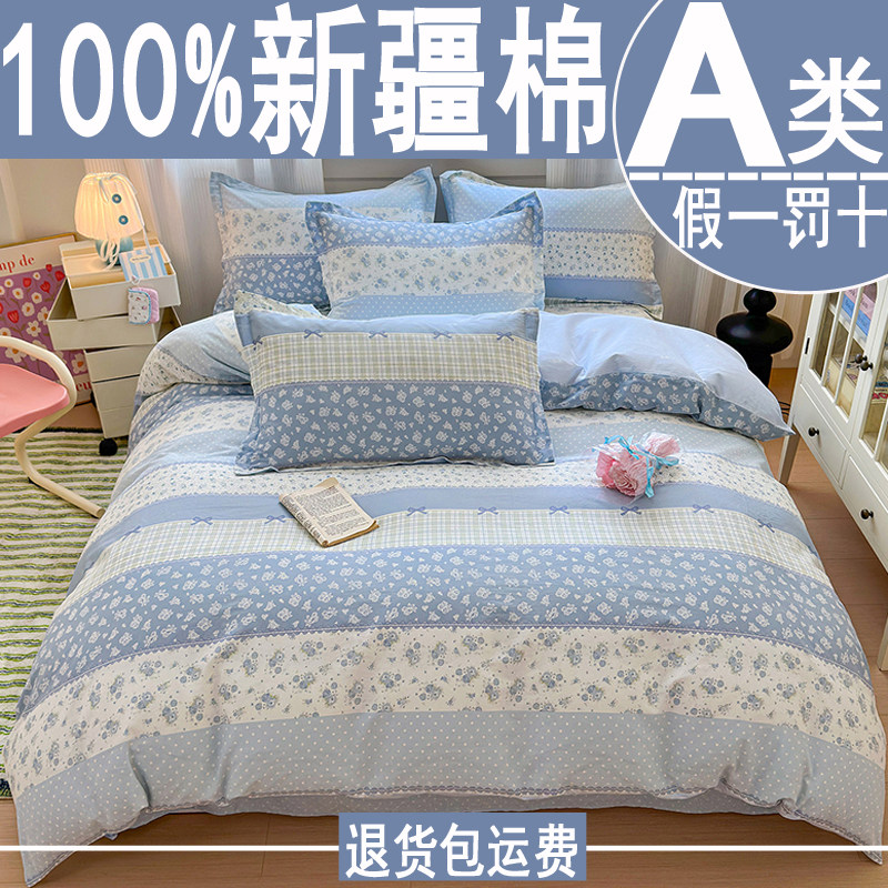 A类母婴级全棉双层纱被套纯棉被罩单件学生宿舍床上三件套四件套4