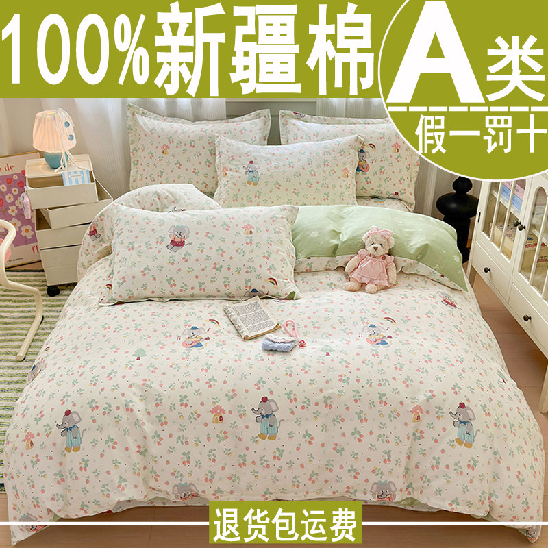 微瑕纯棉床单床笠枕套双人被套1.5m1.8m学生宿舍1.2m 清仓处理