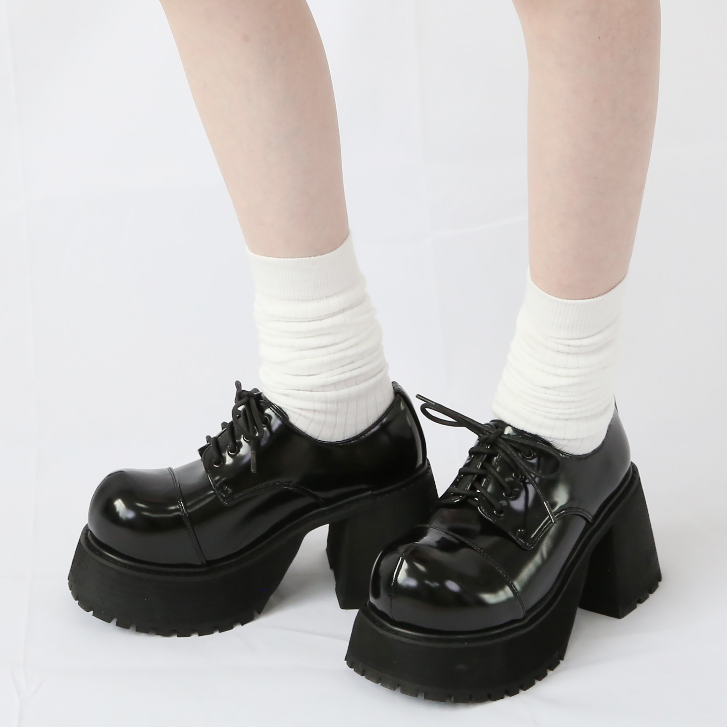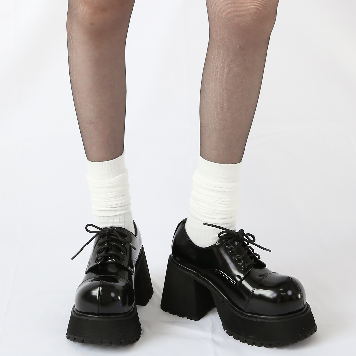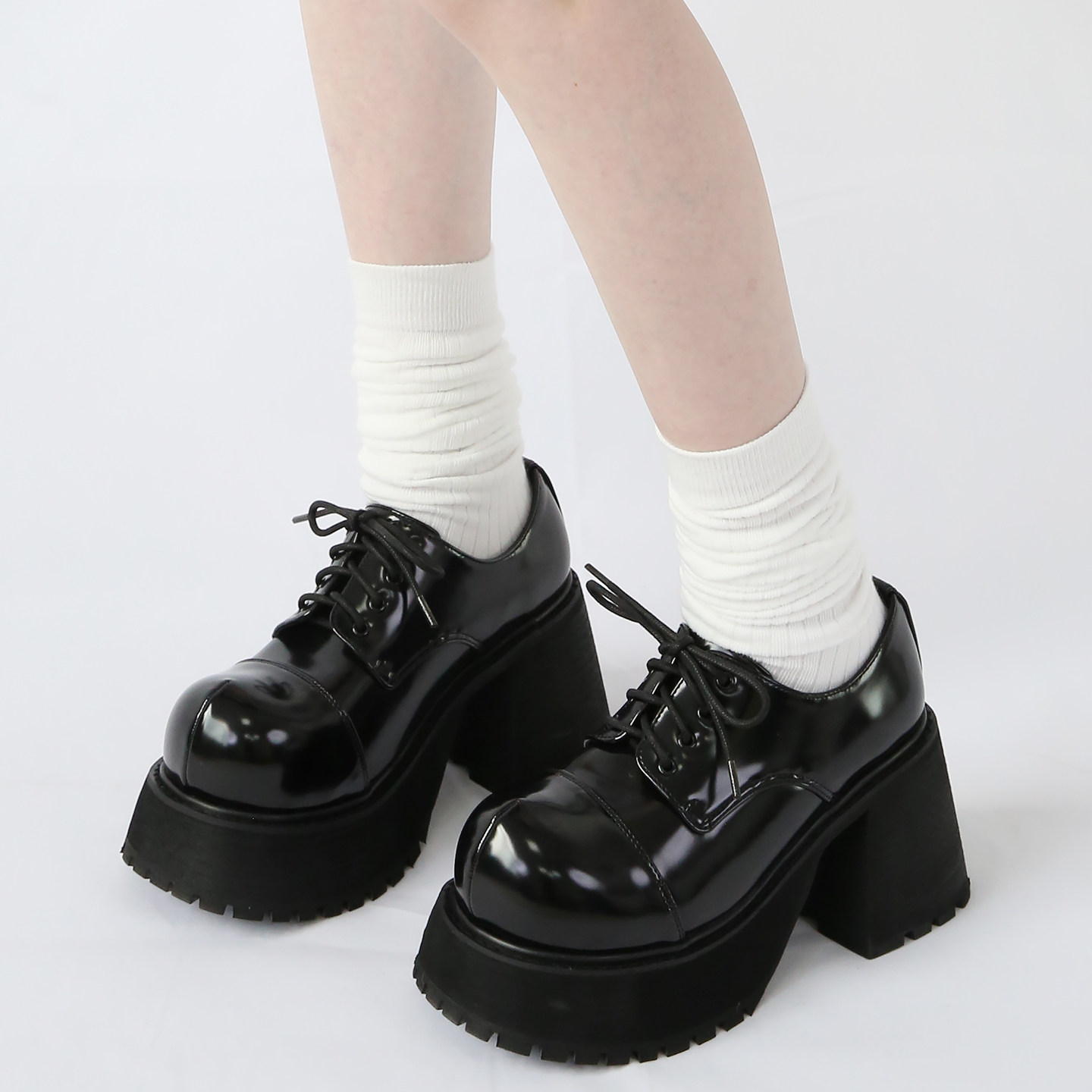 JUICE 辣妹粗高跟厚底大头鞋 Y2K小个子增高系带单鞋 PARK美式