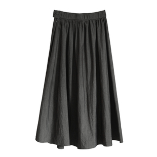 花吉Q553松灰色 宝包 高腰光泽感伞裙2026新款 秋半身裙 小元