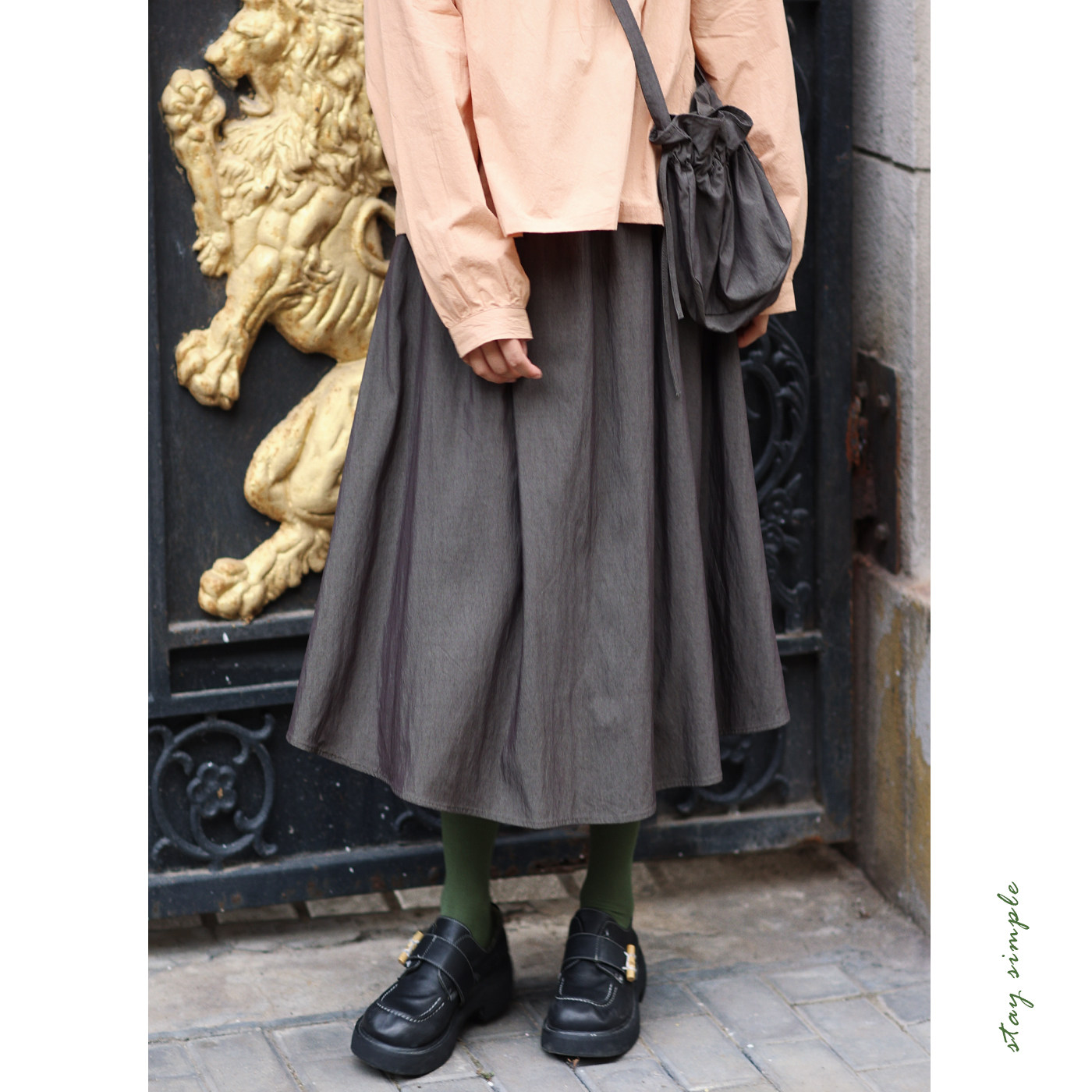 为您提供商品花吉Q553松灰色 宝包 高腰光泽感伞裙2026新款 秋半身裙 小元的详细介绍,