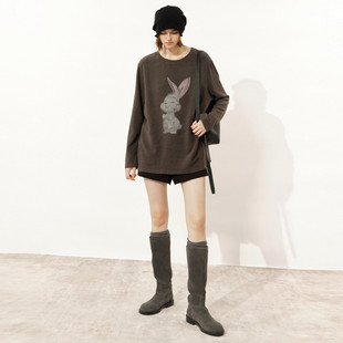 卡通印花休闲宽松长袖 T恤女上衣UL4D0190283 新款 uti尤缇2025冬季