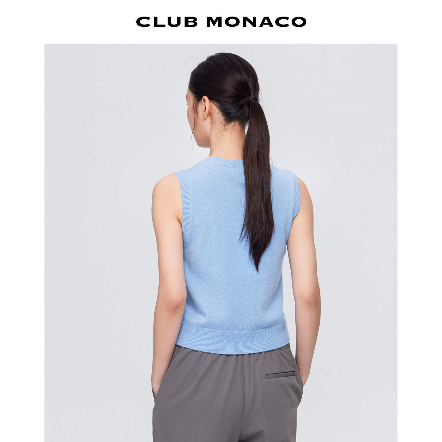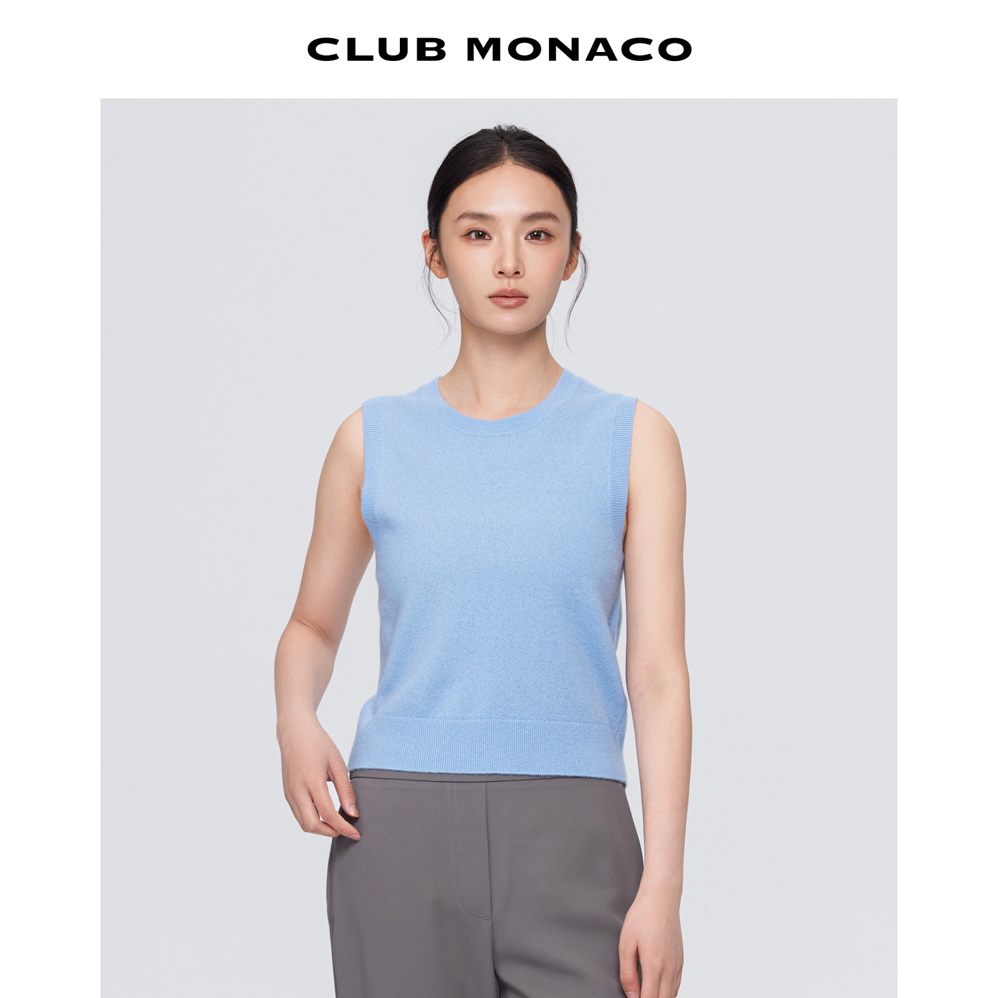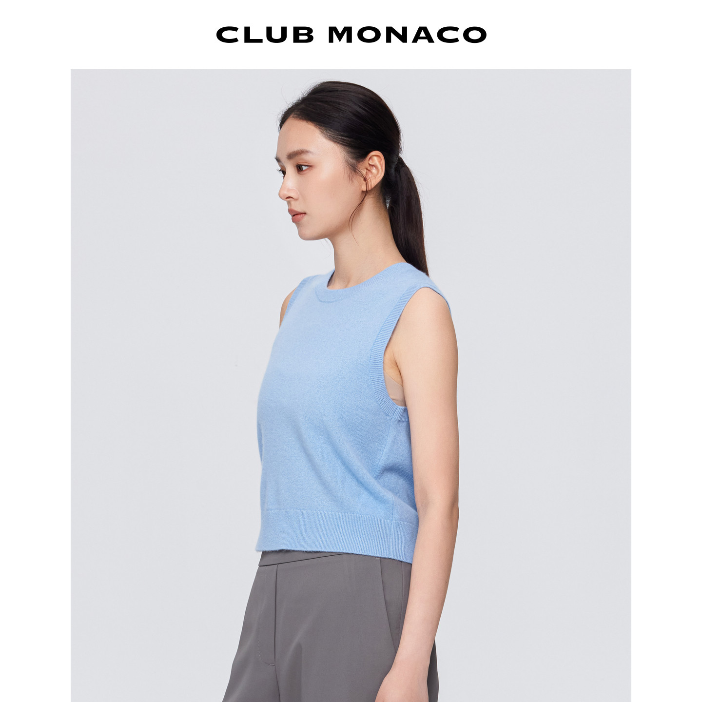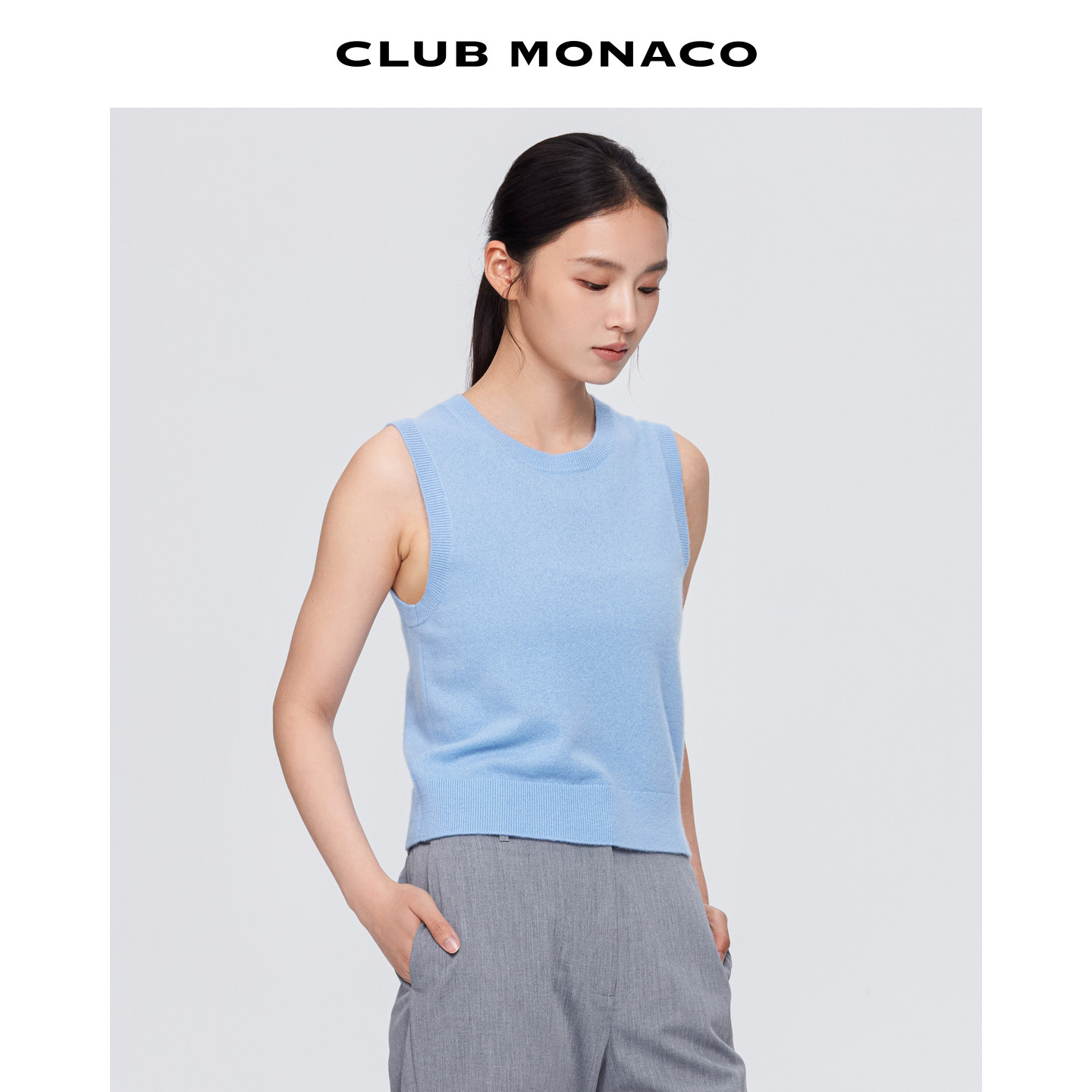 MONACO女士无袖 100%山羊绒 CLUB 针织背心 圆领清新短款由
