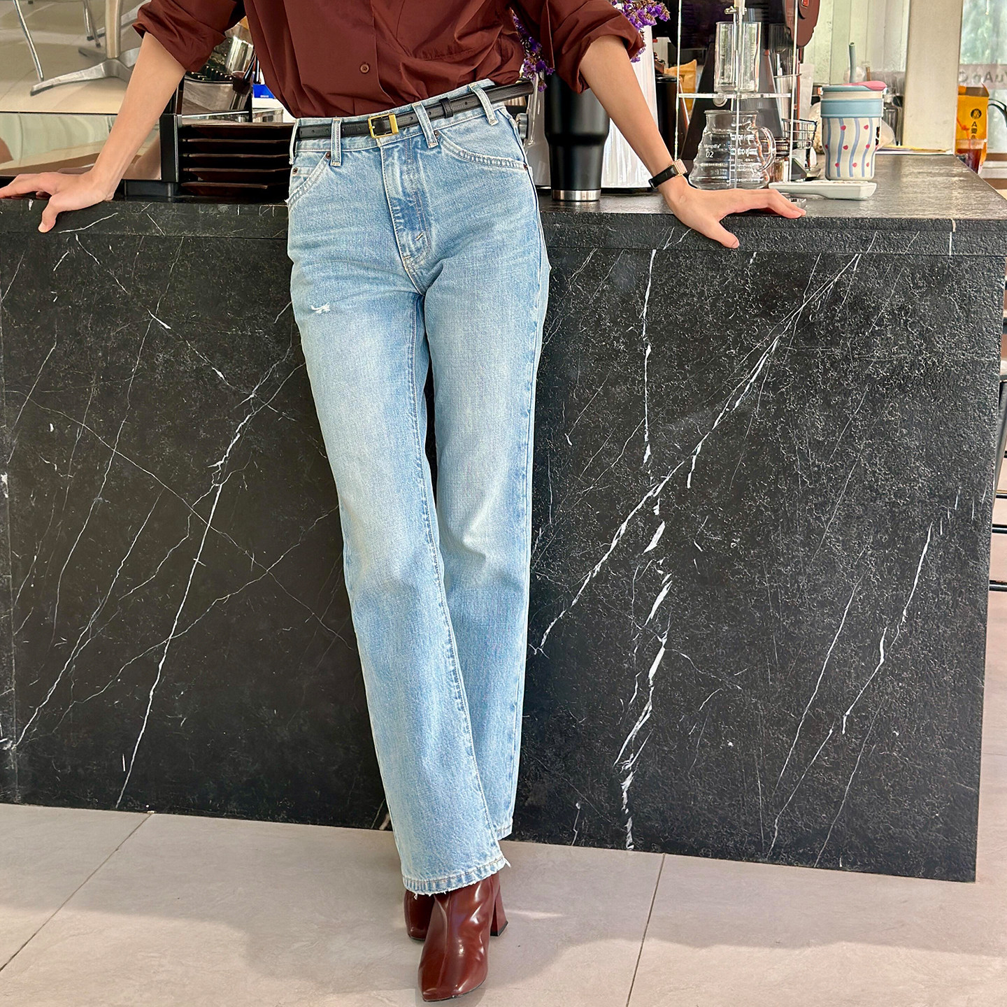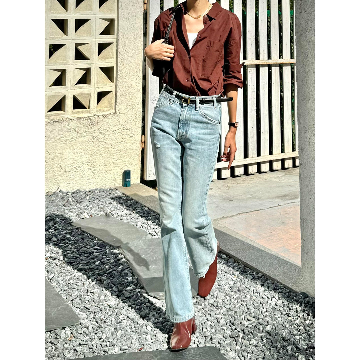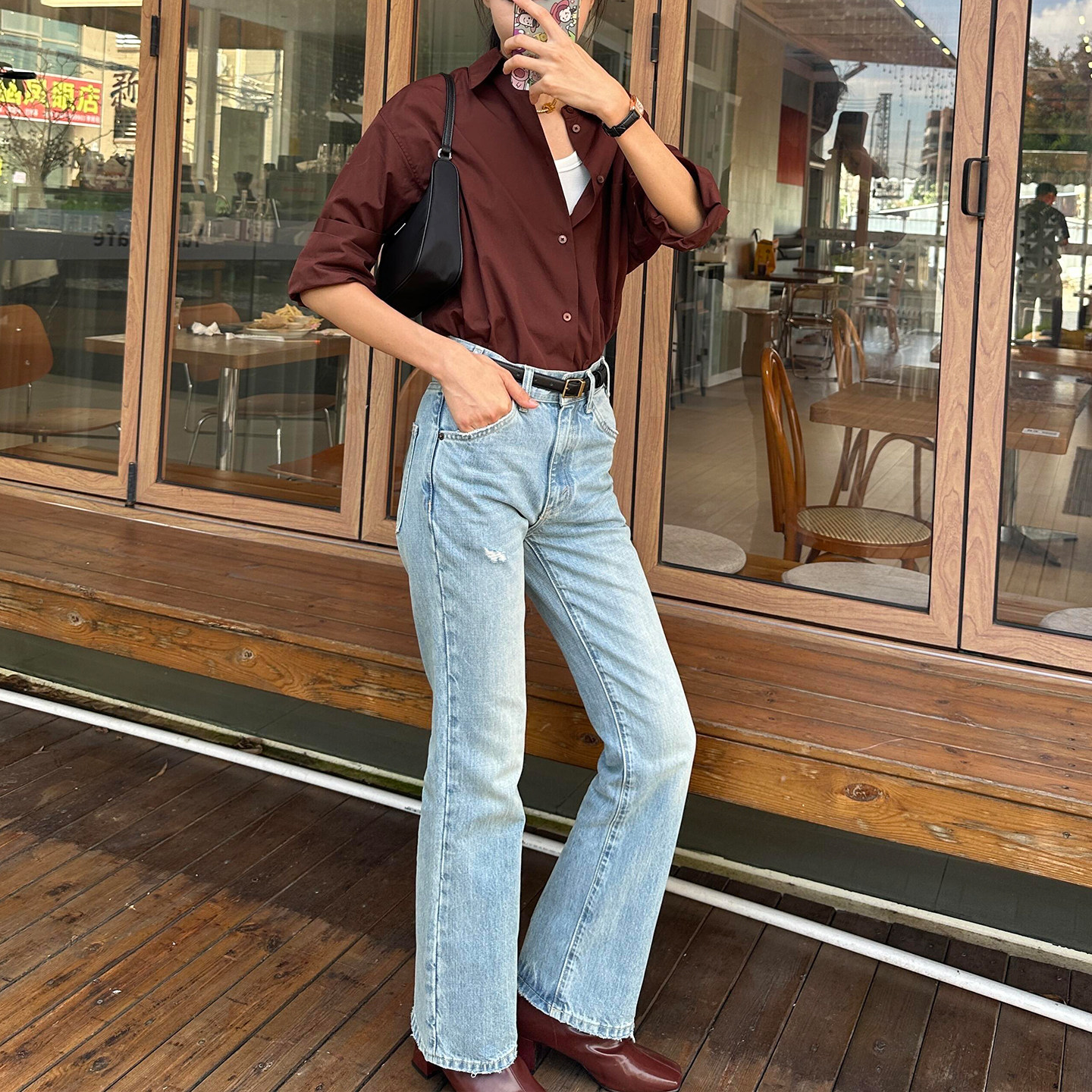 中高腰纯棉无弹极简风长裤 女 微喇叭牛仔裤 高端修身 司林 法式