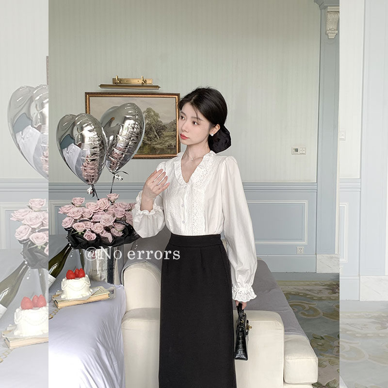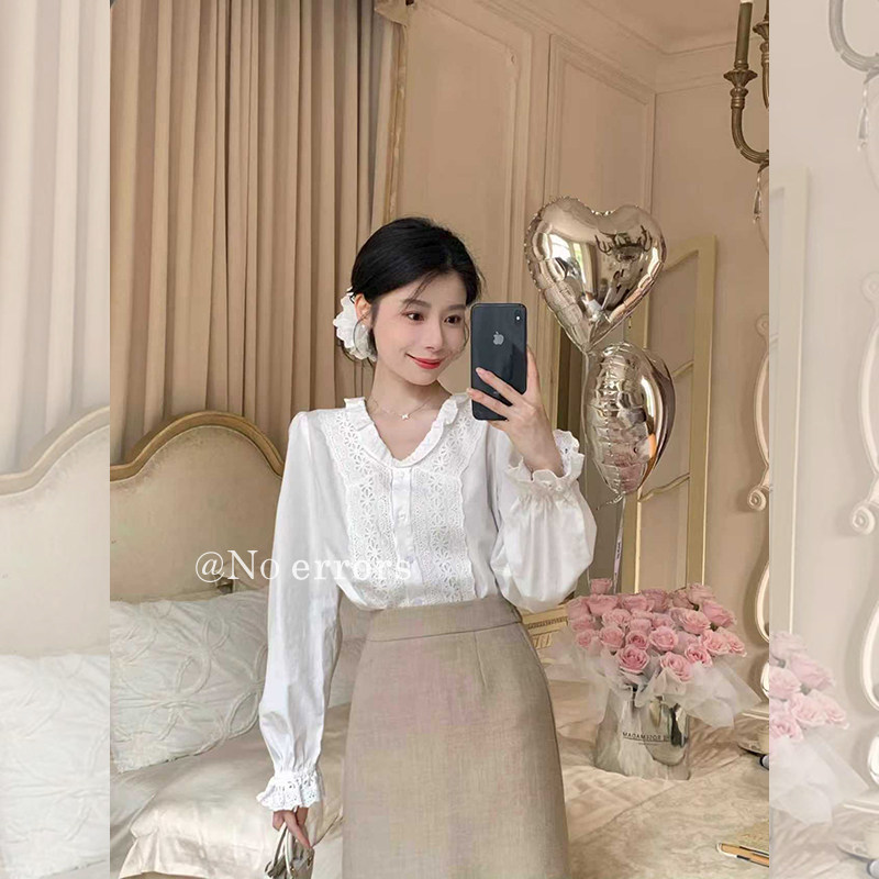 优雅镂空刺绣衬衫 白色法式 errors 新 上衣 2025秋季 长袖 不出错No