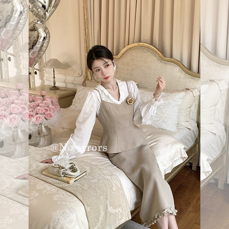 上衣波点裙格蕾系套装 女 学院风花边衬衫 初町野原创jk小花蕾长袖