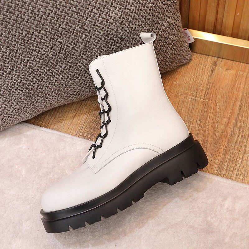 为您提供商品新款 女靴31 厚底内增高系带k牛皮马丁靴加绒网红中筒英伦小码的详细介绍,