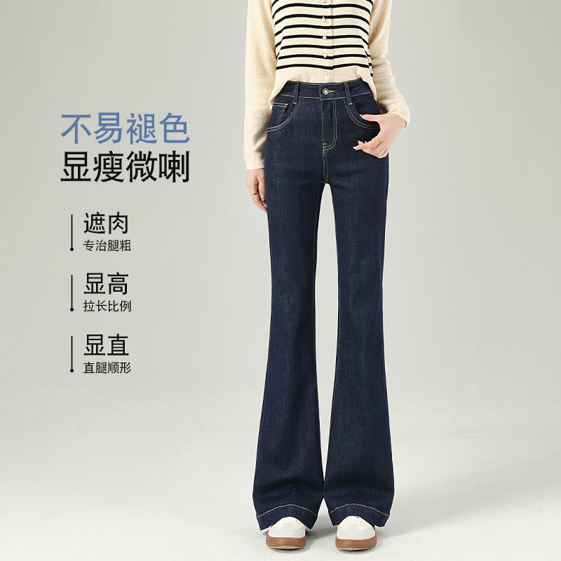 丹宁蓝微喇牛仔裤 今年流行深蓝色春季 高腰显瘦喇叭裤 子 女2026新款