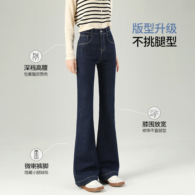 为您提供商品丹宁蓝微喇牛仔裤 今年流行深蓝色春季 高腰显瘦喇叭裤 子 女2026新款的详细介绍,