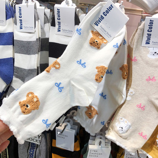 东大门新款 袜子甜美植绒花边卡通少女中筒蝴蝶结5192 她他韩袜