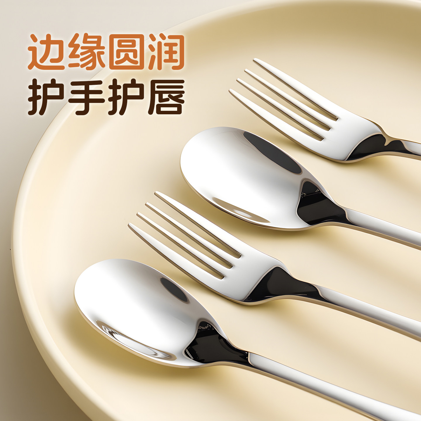 不锈钢加厚西餐勺创意可爱套装 汤匙 甜品勺饭勺汤勺调羹勺主叉筷
