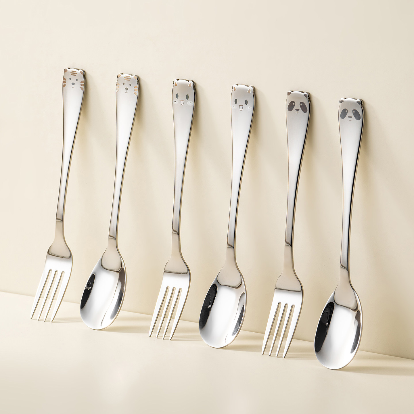 onlycook食品级316L不锈钢勺子叉子儿童宝宝吃饭小调羹可爱汤匙