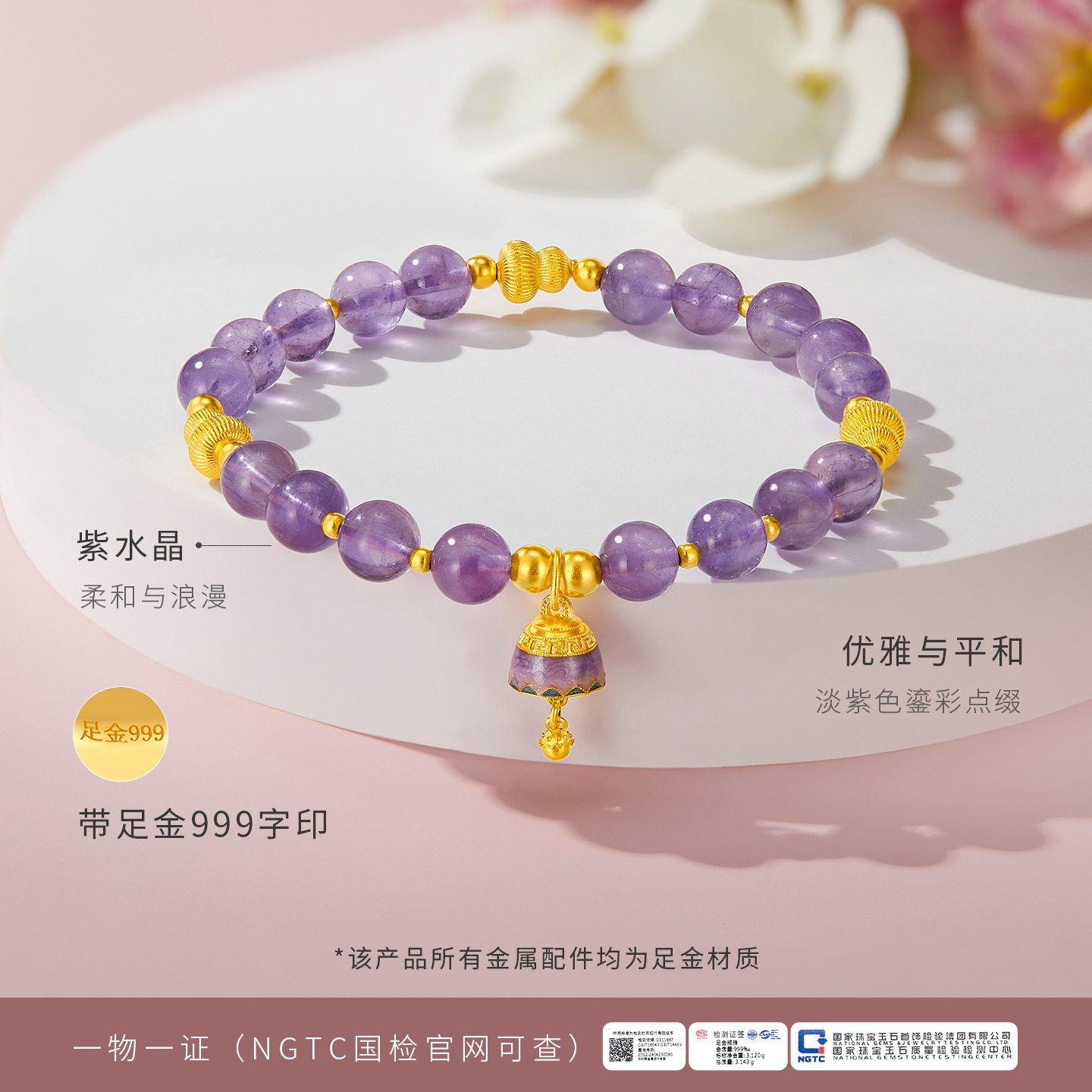 为您提供商品足金999紫水晶手串生日礼物送女友 金至尊水晶金黄金手链女2026的详细介绍,
