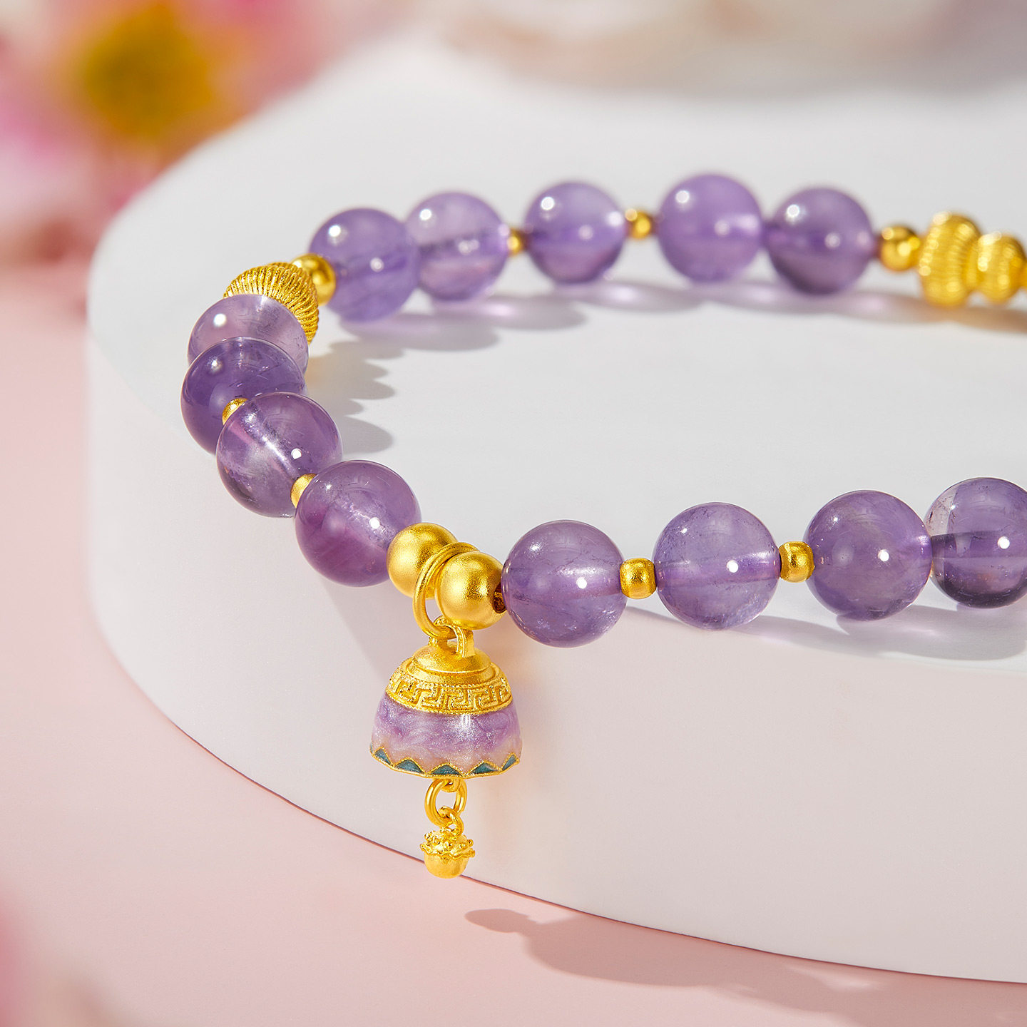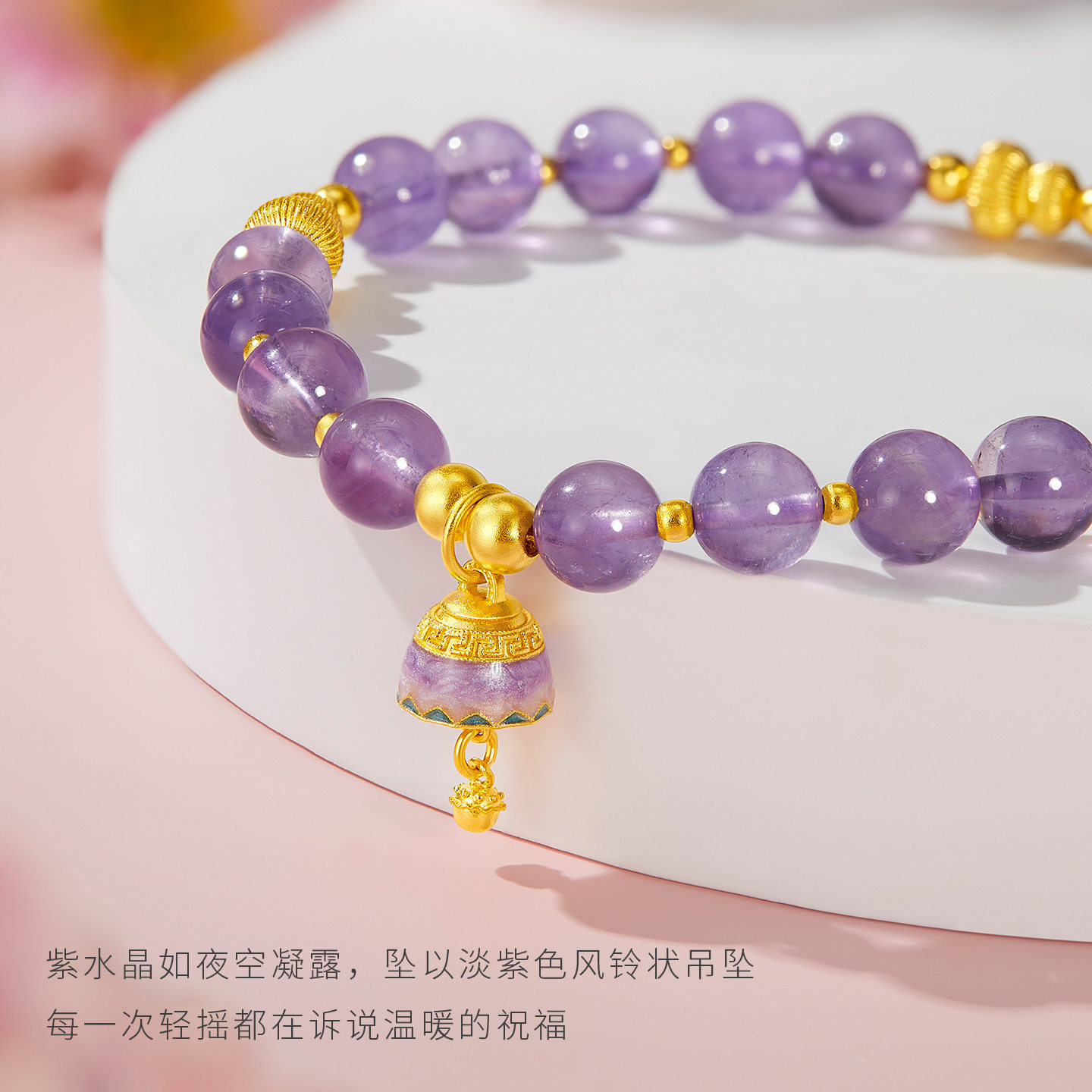 足金999紫水晶手串生日礼物送女友 金至尊水晶金黄金手链女2026由
