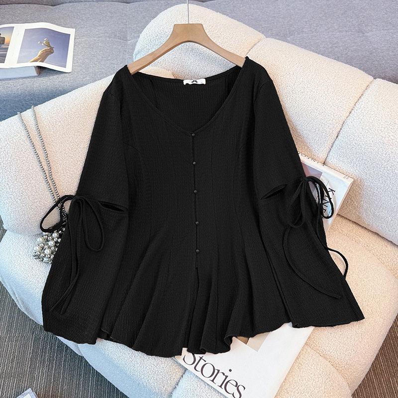 为您提供商品300斤特大码 女春季 胖mmV领显瘦小衫 200上衣 设计感甜美不规则衬衫的详细介绍,