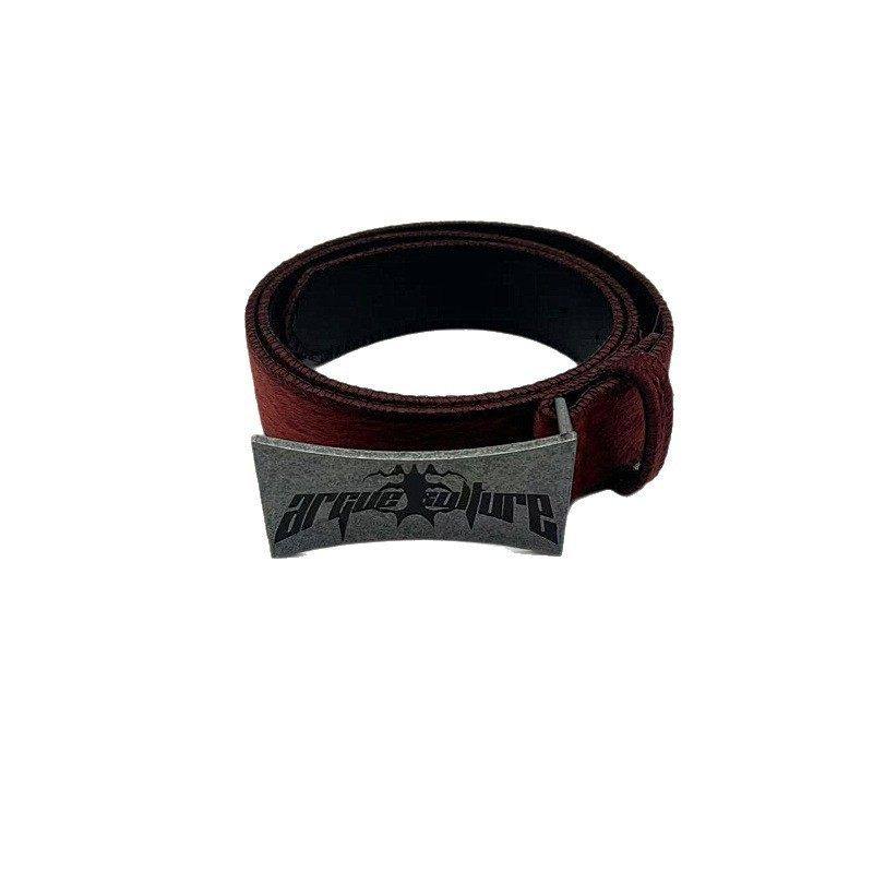 CulturE重磅做旧金属牌PU皮马毛皮带小众复古高级百搭腰带 ArguE
