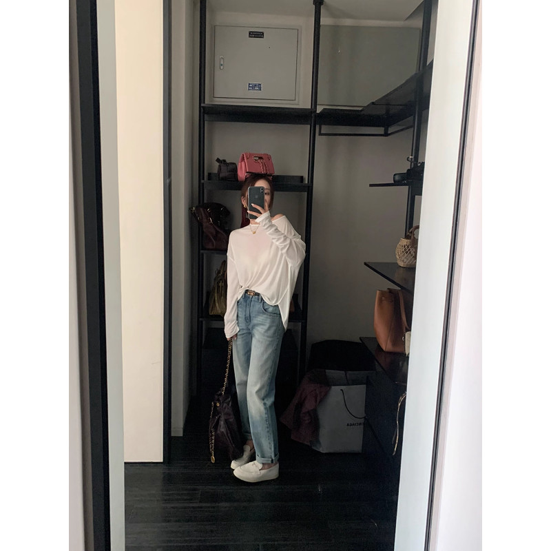 橘子树在哪儿白色复古直筒牛仔裤 款 高腰宽松垂感拖地阔腿裤 女春季