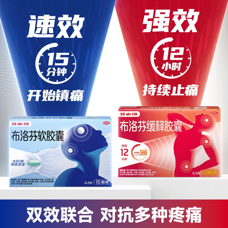 24粒 芬必得布洛芬缓释胶囊解热镇痛感冒流感偏头痛牙关节痛0.3g