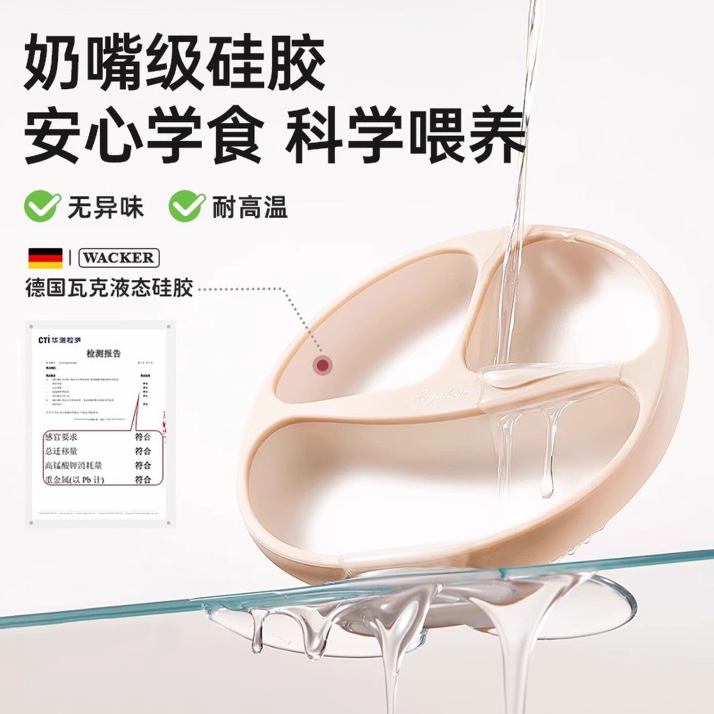 吸盘儿童餐具婴幼儿自主进食专用分格辅食硅胶 优代宝宝餐盘吸附式