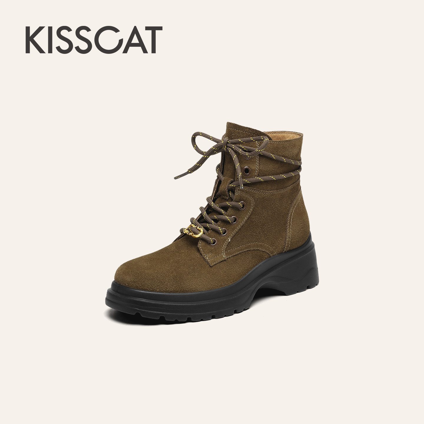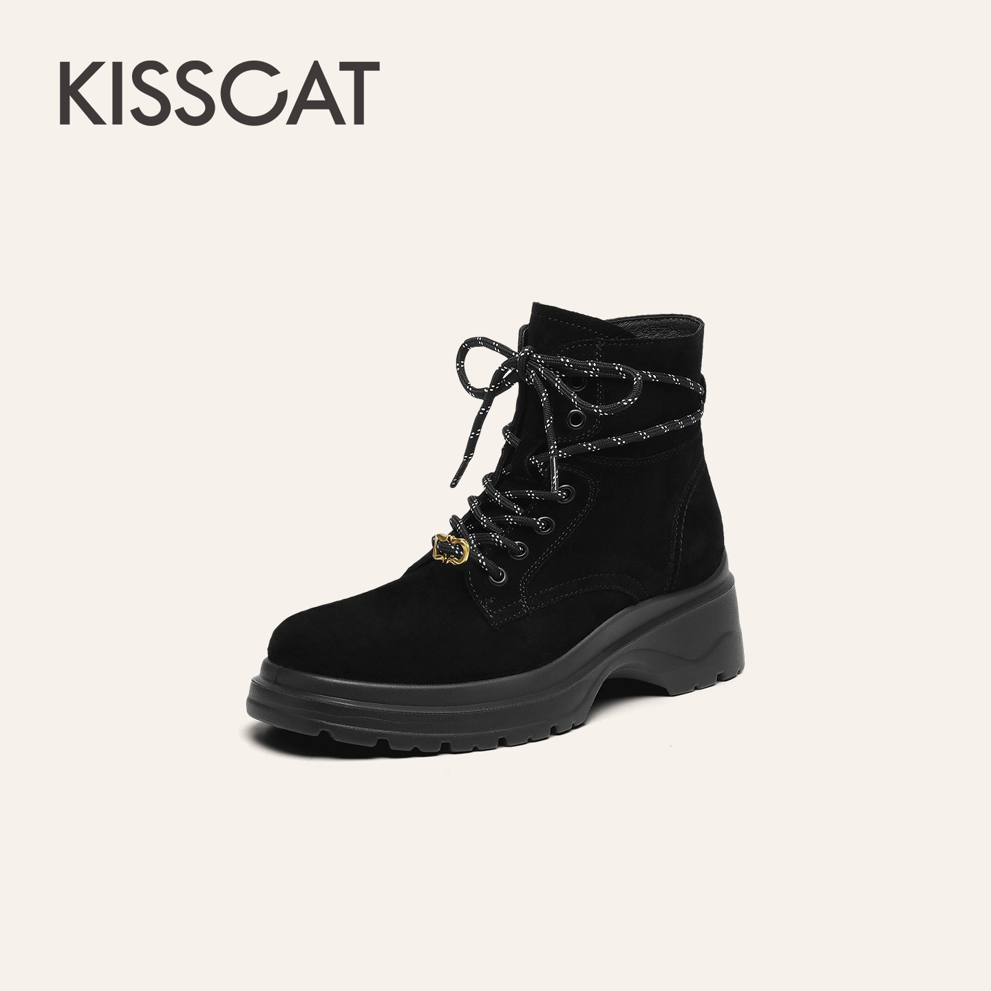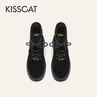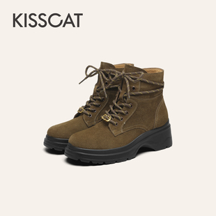 靴户外靴登山靴厚底马丁靴旅游靴女 KISSCAT接吻猫25冬新中筒工装