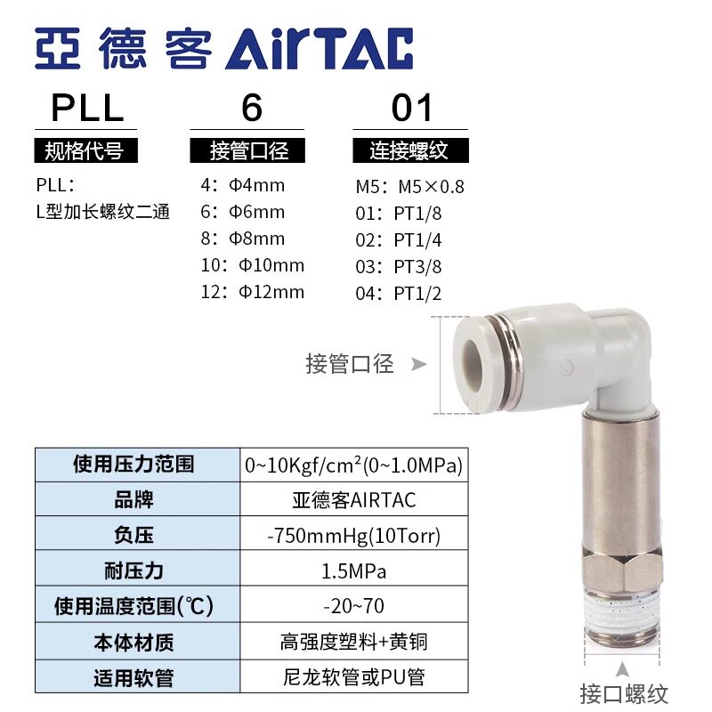 为您提供商品亚德客气动气管快速接头加长型螺纹弯通弯头PLL4的详细介绍,