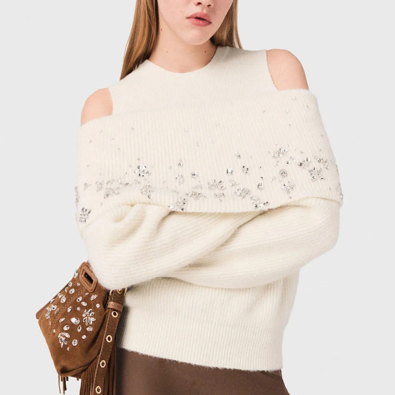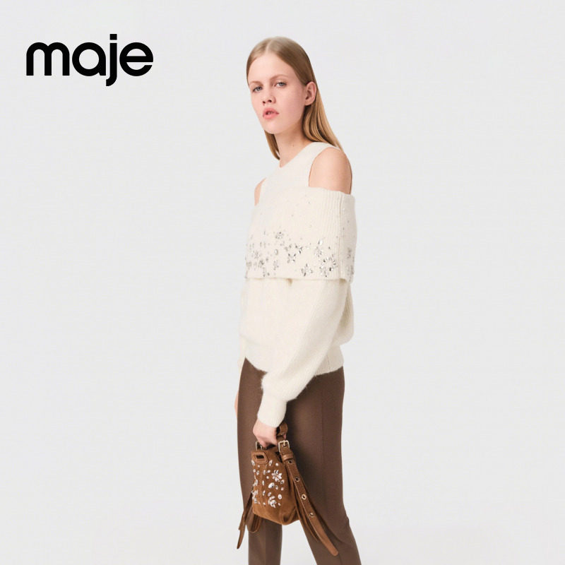饰圆领露肩假两件针织衫 季 仿钻装 法式 末6折Maje2025秋冬款 女装由