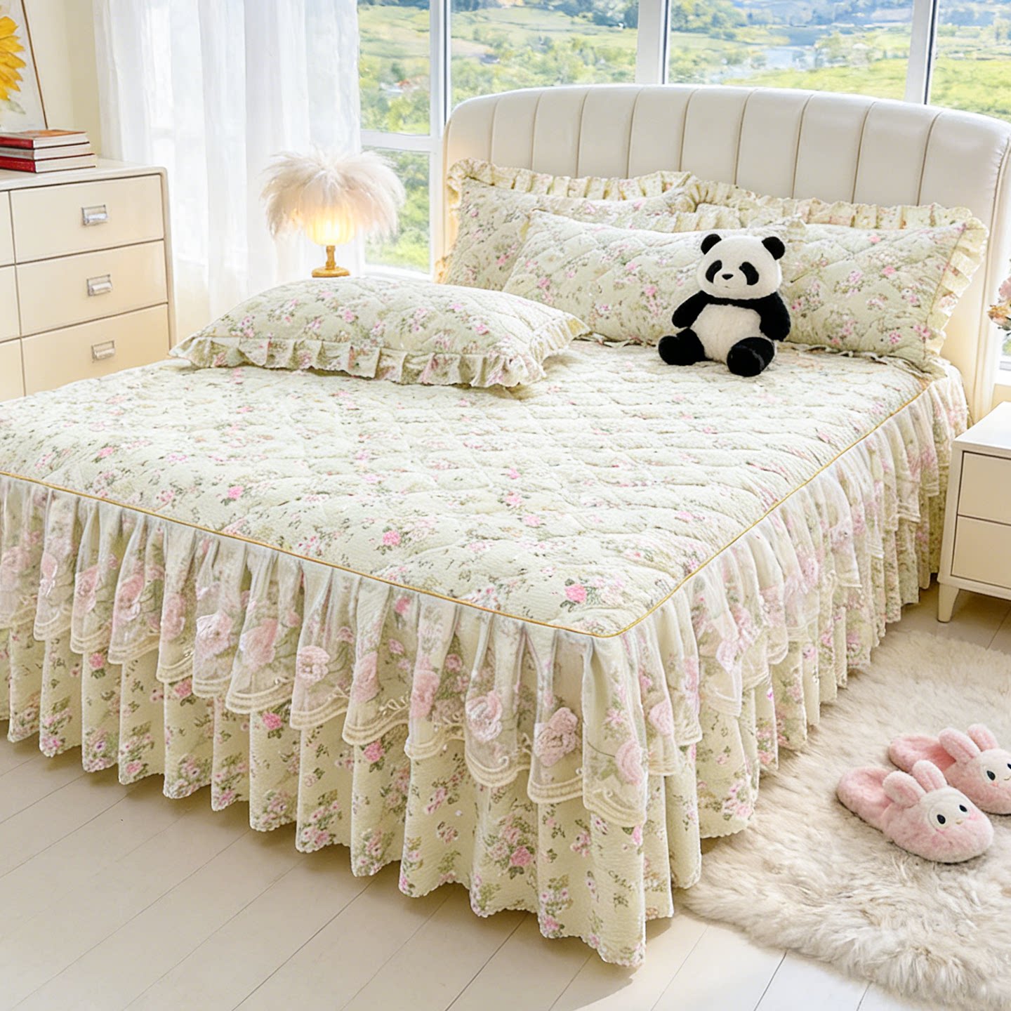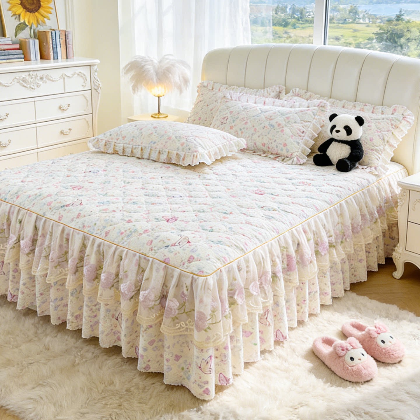 夹棉床裙单件2025新款 三件套防尘床垫套 公主风遮丑下摆床罩床裙款