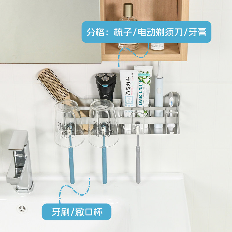 为您提供商品免打孔卫生间一家四口放牙杯挂架 304不锈钢牙刷牙膏置物架壁挂式的详细介绍,