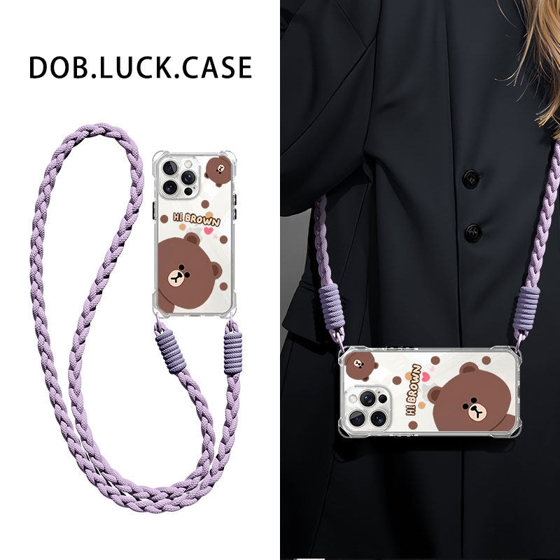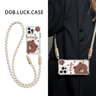 可爱布朗熊适用华为P80手机壳9070荣耀400全包P60斜挎挂绳mate50pro高级nova12日韩13畅享x30i透明硅胶防摔女由