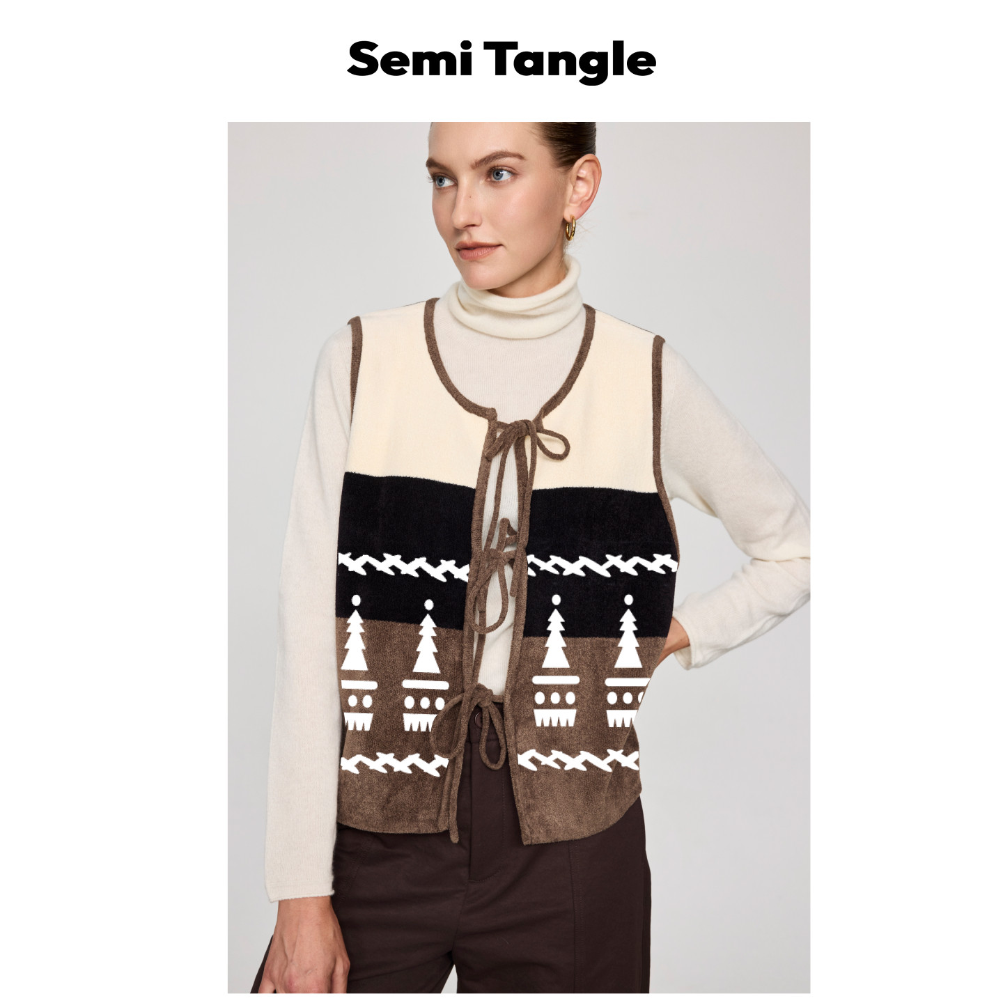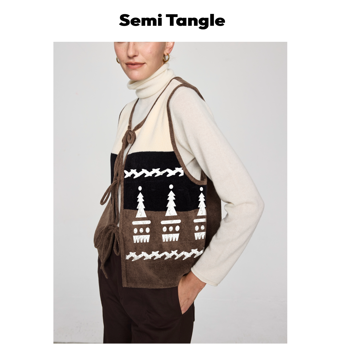 Semi 丝绒感针织拼色色块图案绣花马甲 Tangle「Nibbia」秋冬新品由
