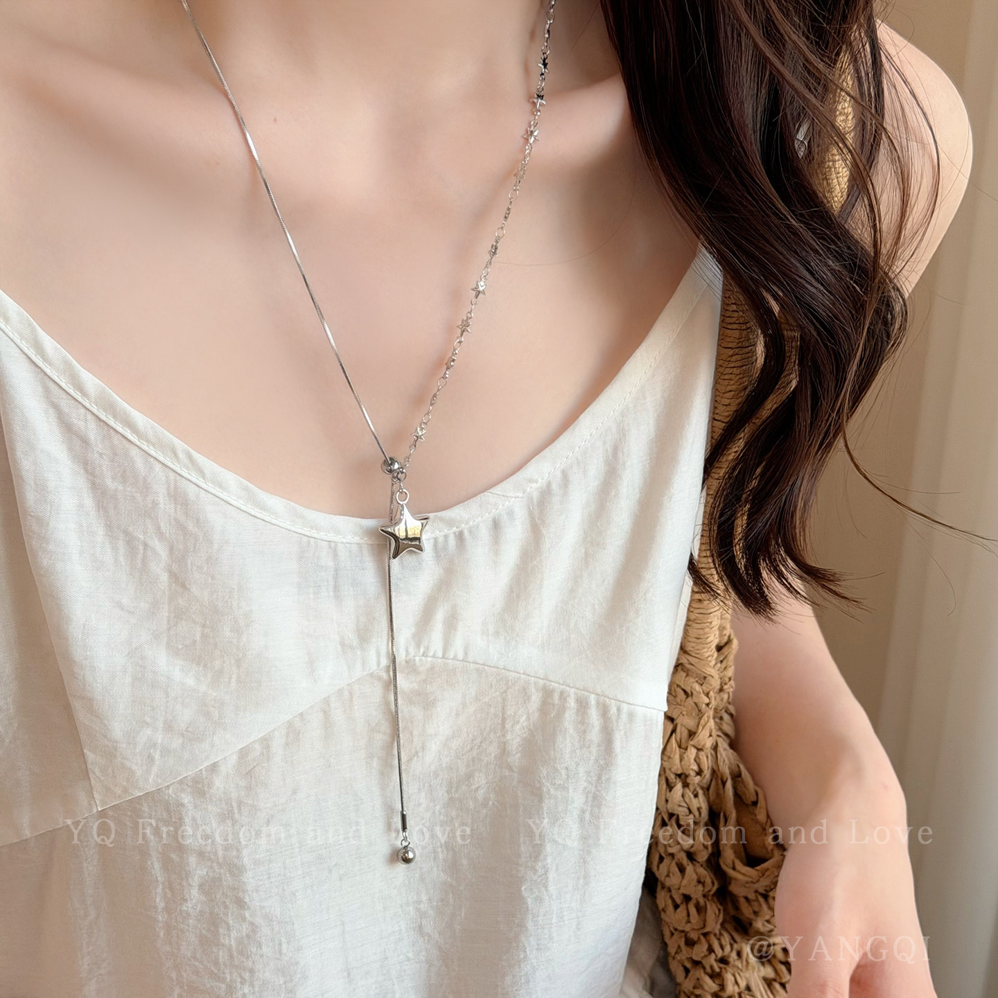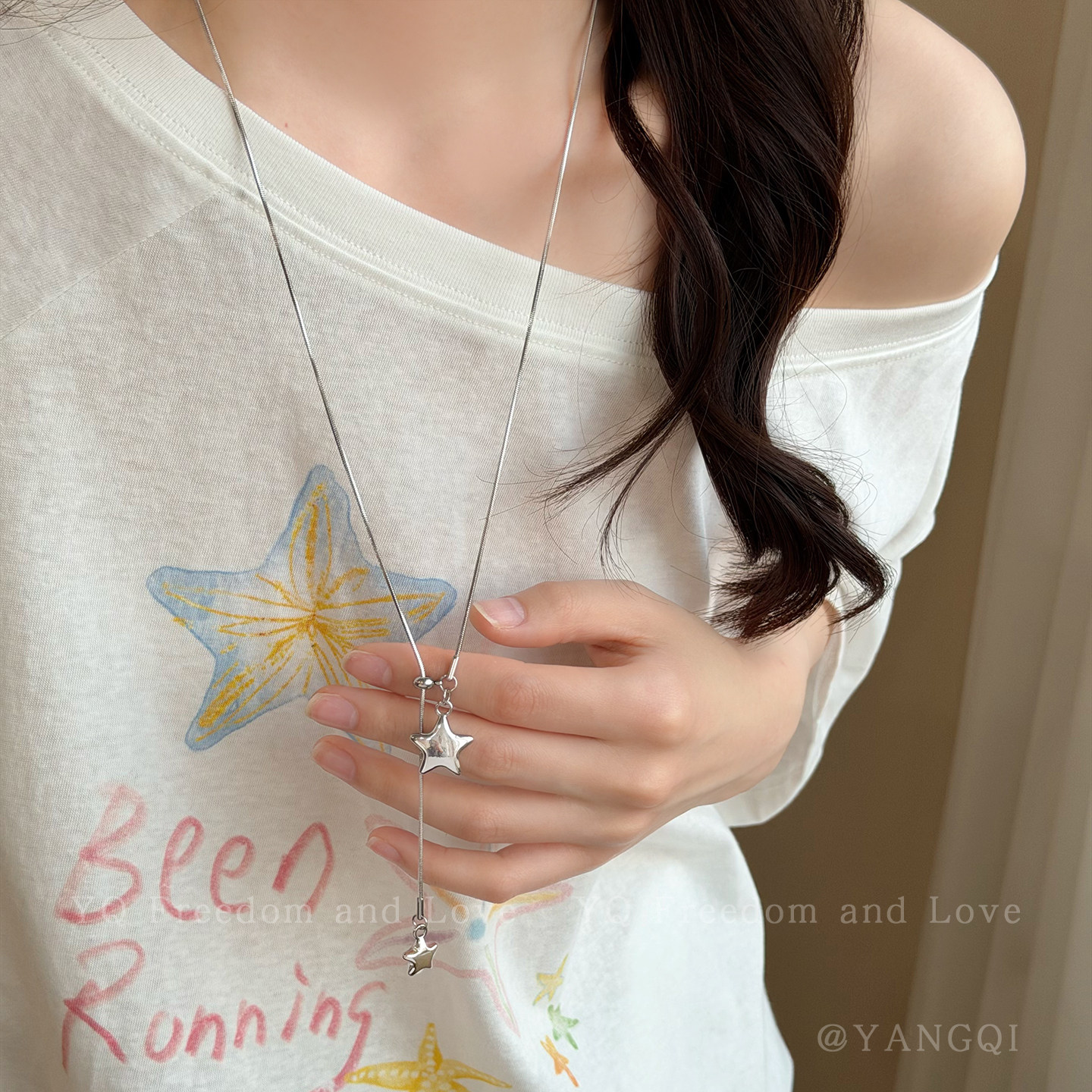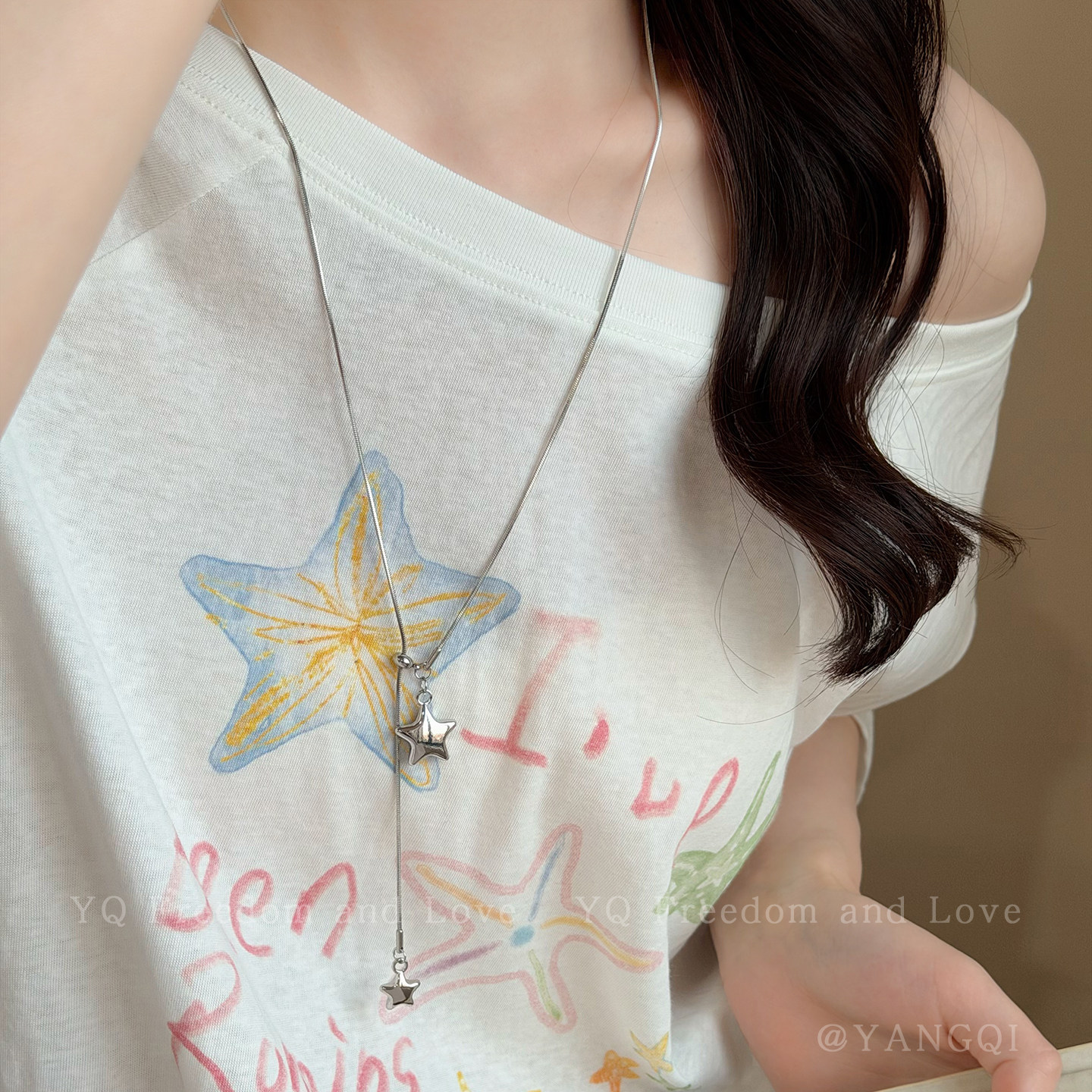 银色不对称星星抽拉项链女2026新款 毛衣链小众高级感配饰 韩系长款