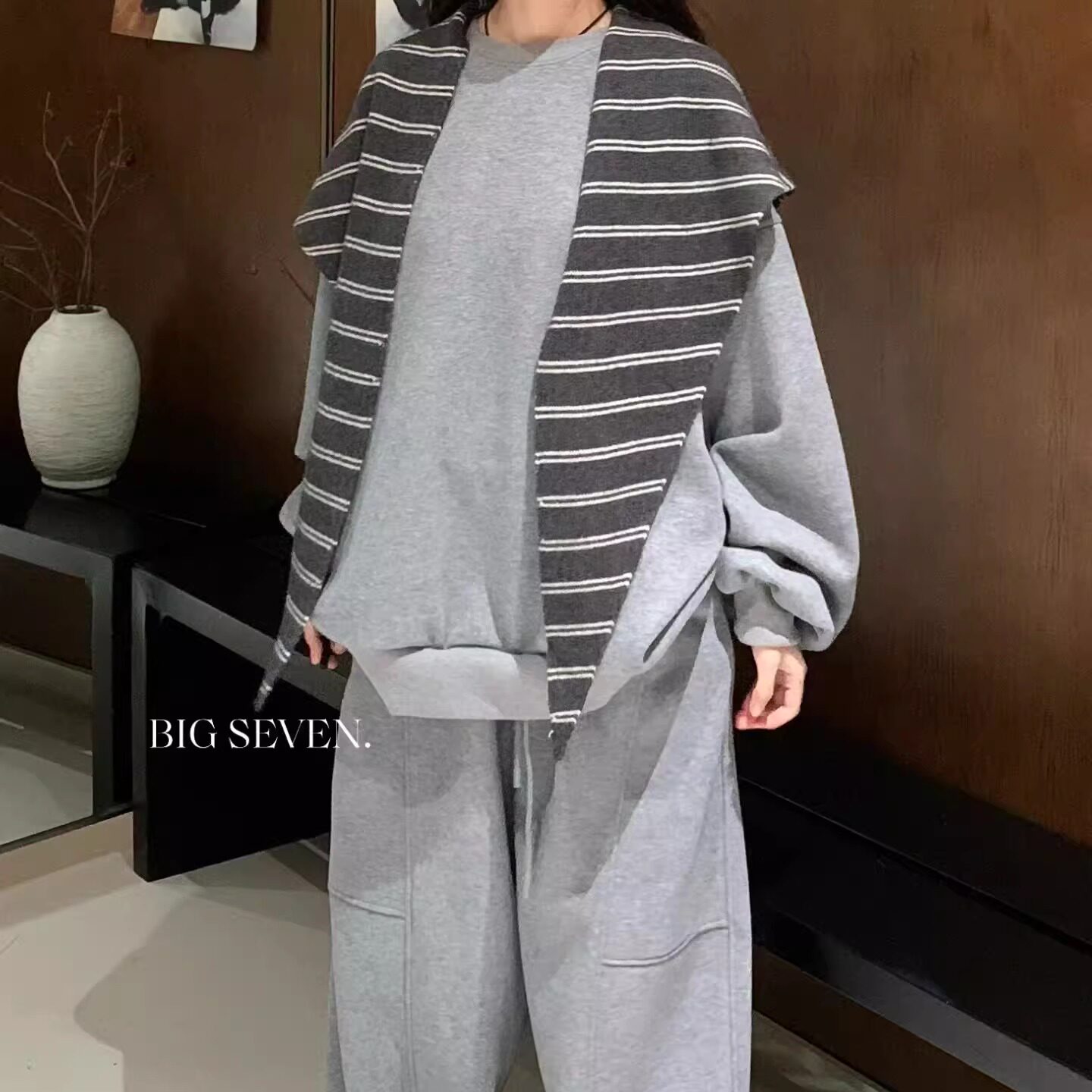 大7女装 韩版 宽松大码 胖mm慵懒休闲风百搭圆领加绒卫衣 78397冬季