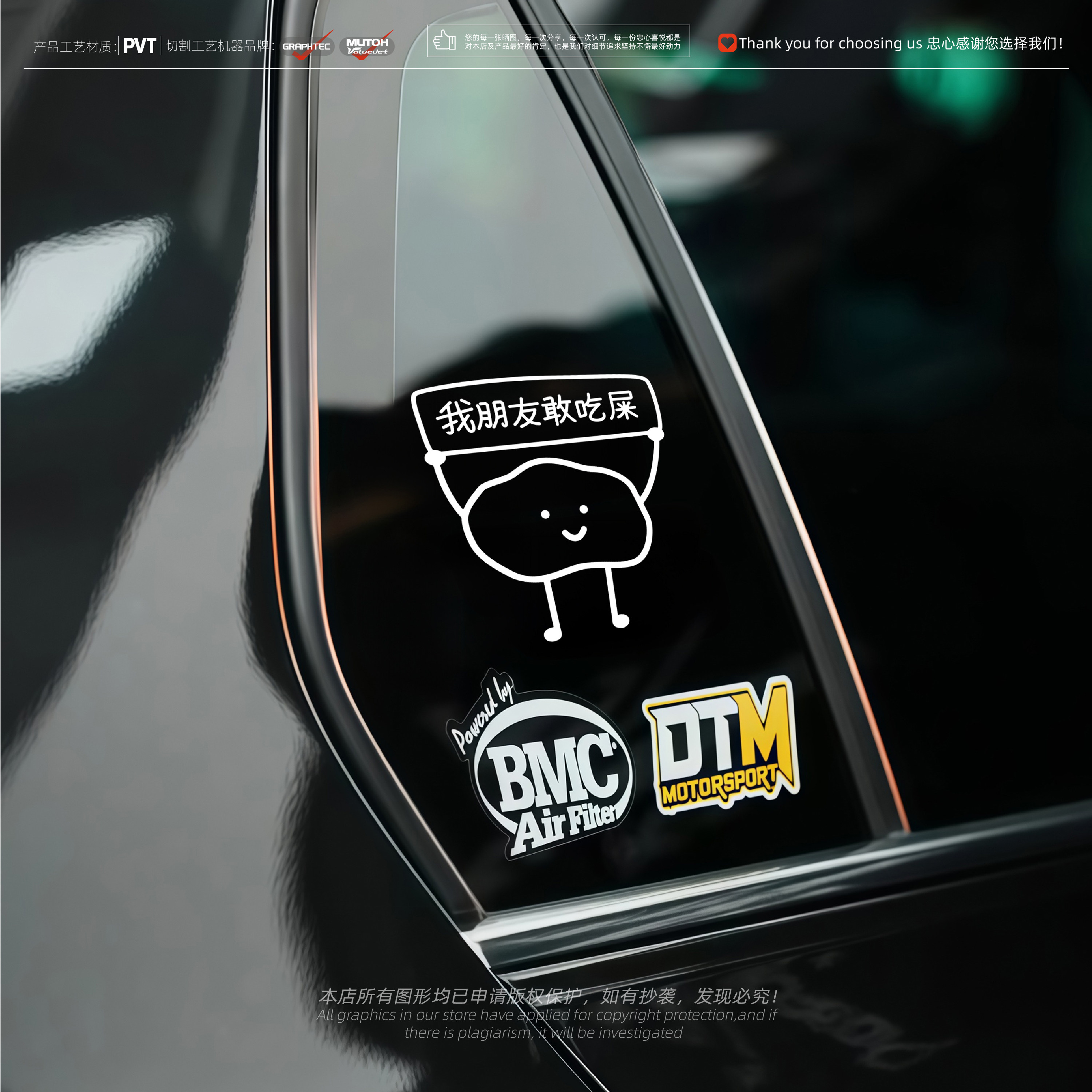 为您提供商品Enginenoise车贴 创意搞笑车贴汽车尾挡风玻璃贴纸 我朋友敢吃屎的详细介绍,