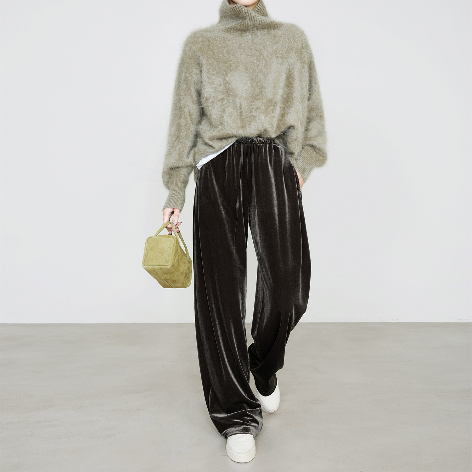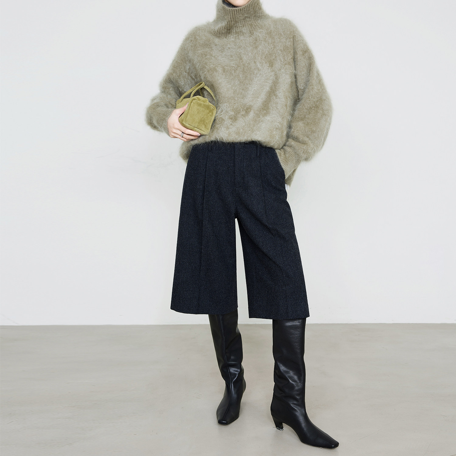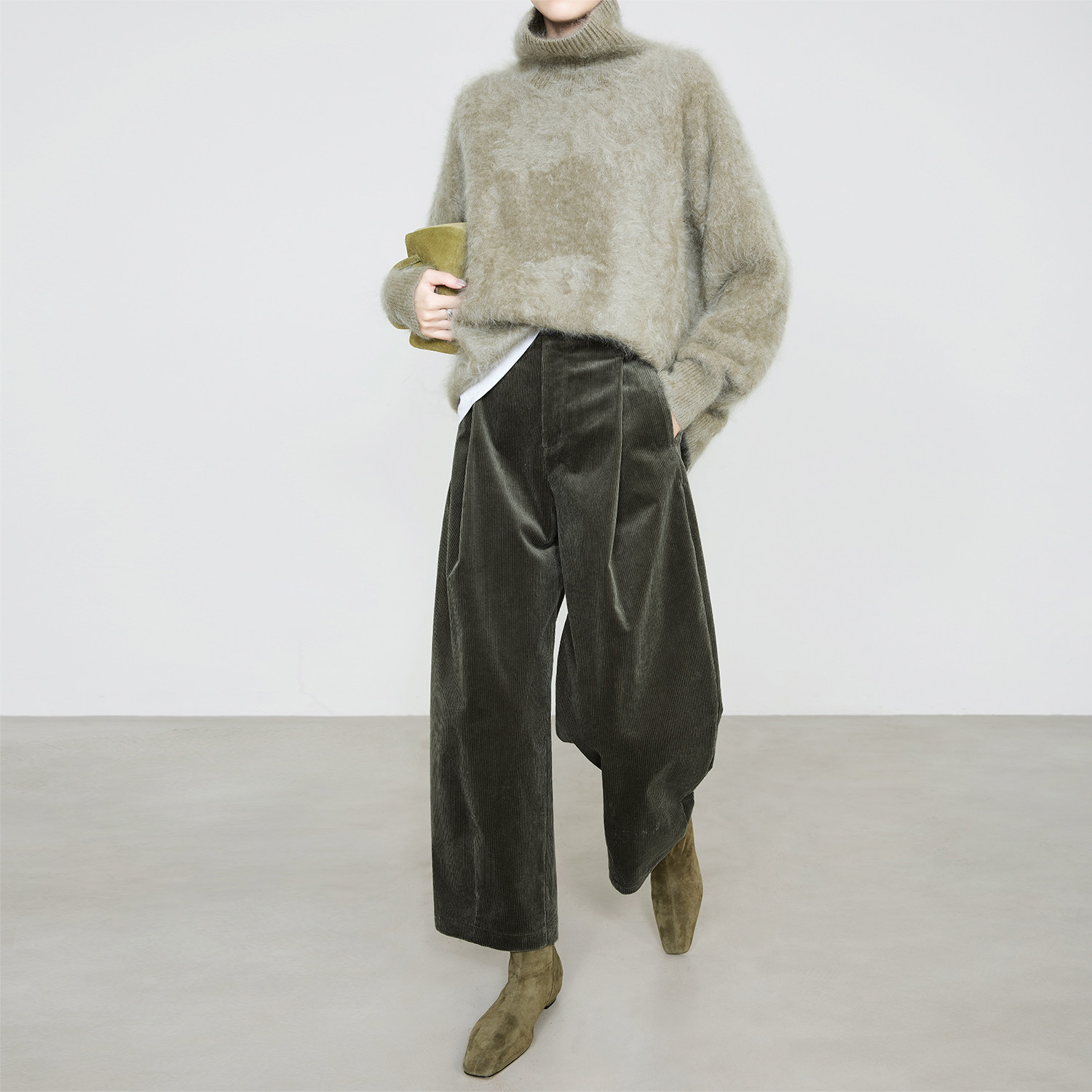 夏莫卡只可干洗100%山羊绒拉毛毛衫 针织毛衣W903 女保暖高领羊腿袖由