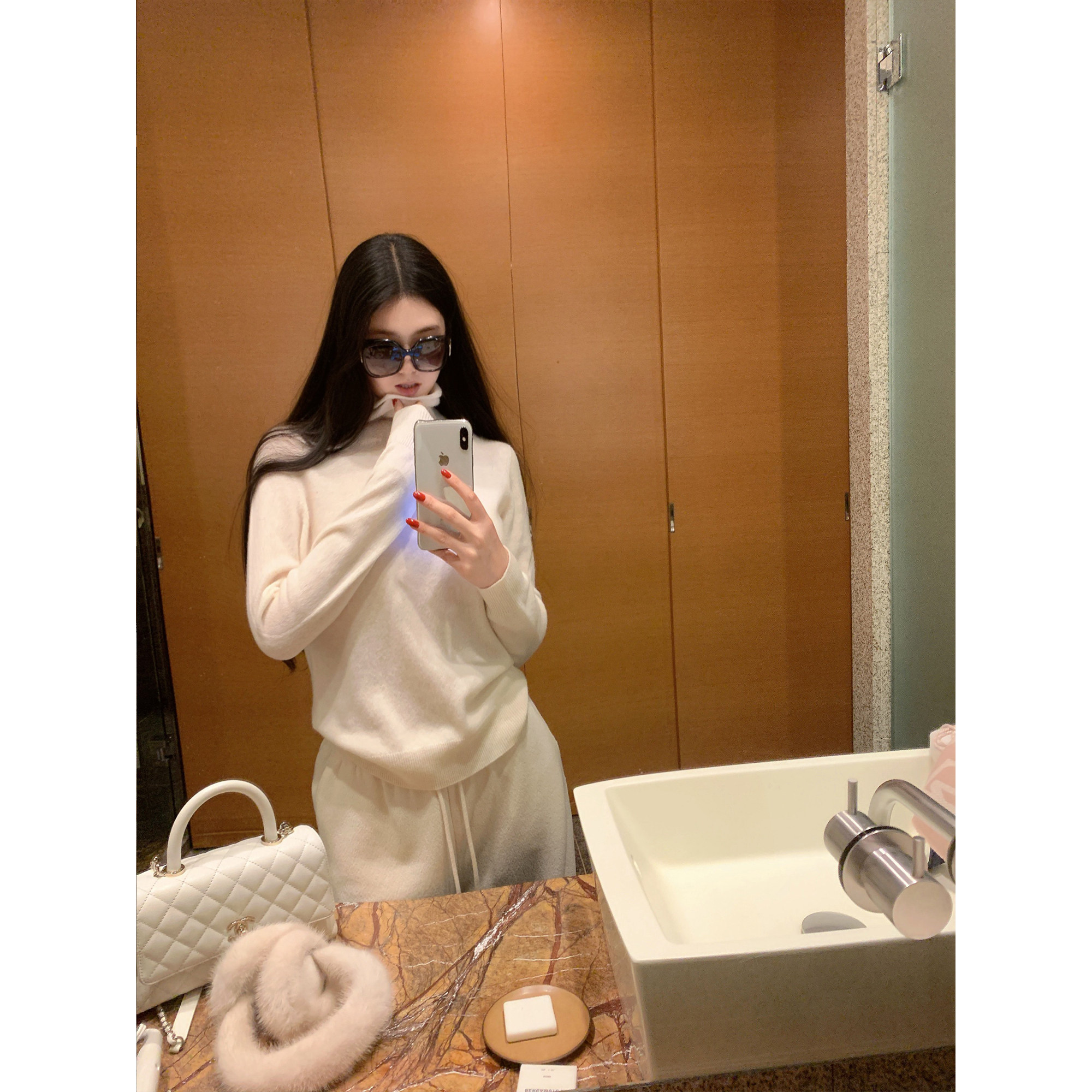 内搭2026新款 半高领木耳边针织上衣高级感毛衣 女春秋季 白色打底衫