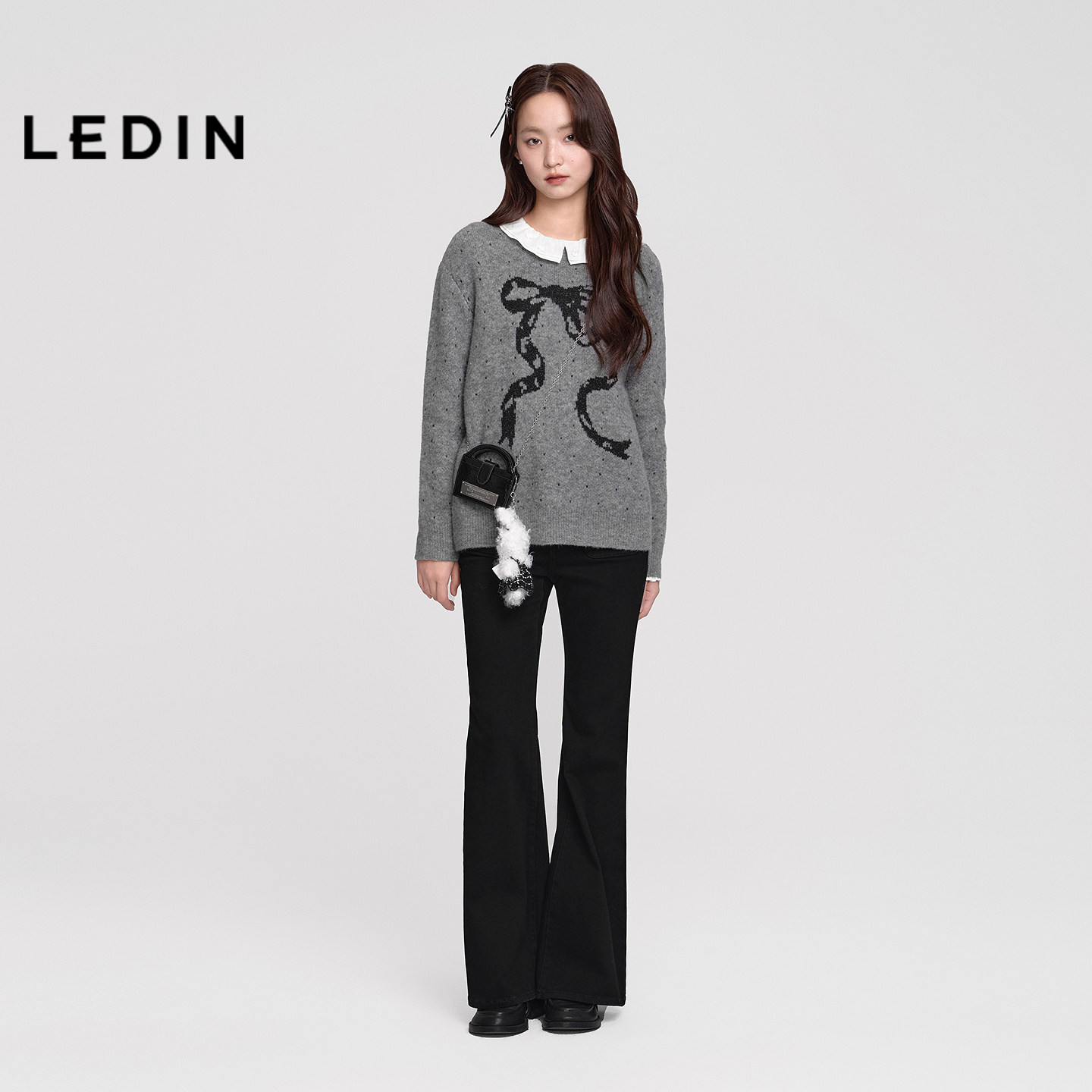 牛仔裤 C1HAF4621 加厚修身 冬新款 商场同款 乐町弹力高腰喇叭裤由