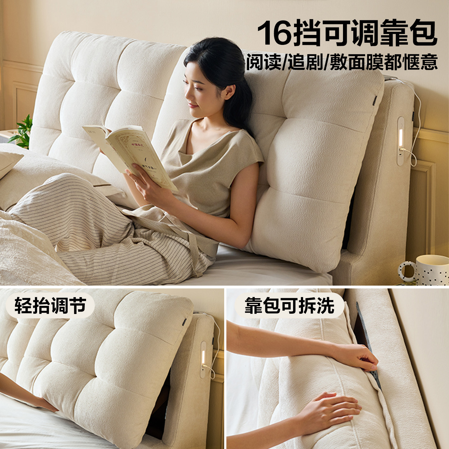 为您提供商品双人软包大床 全友家居奶油风靠背可调多功能雪尼尔布艺床2026新款的详细介绍,
