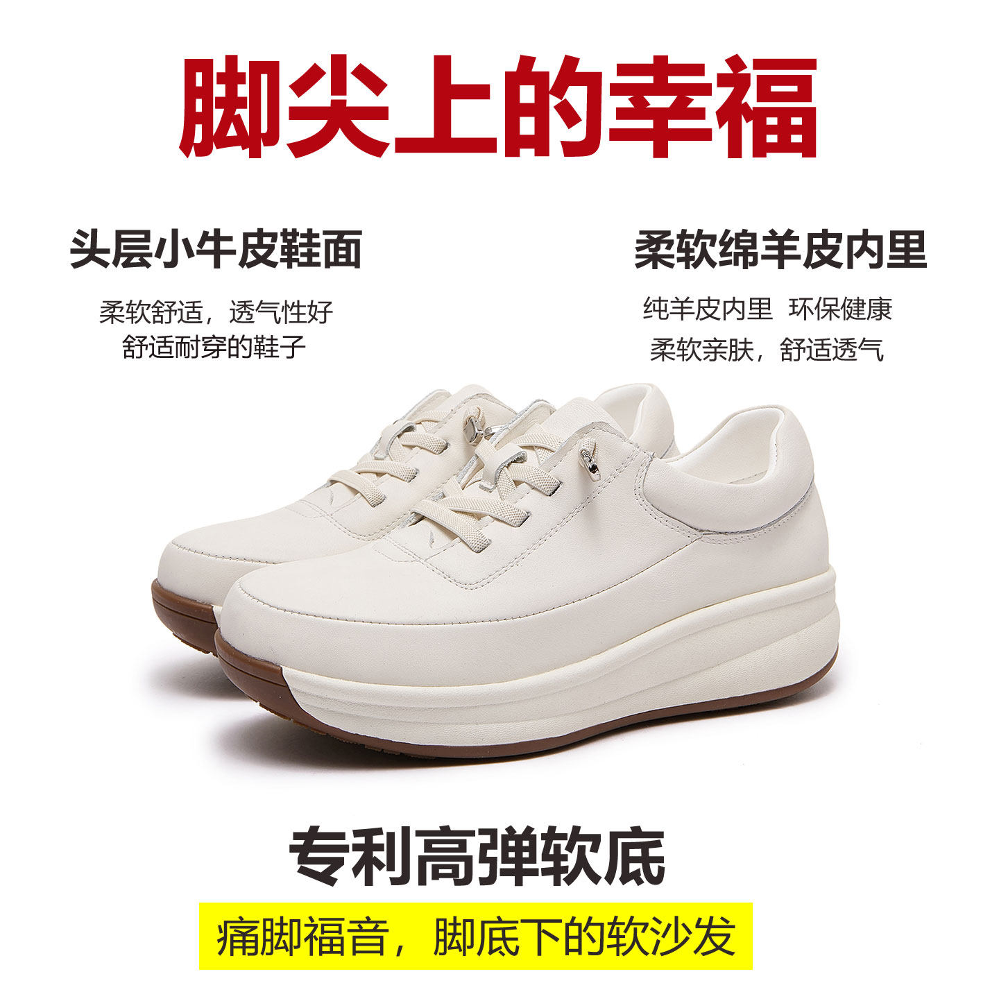 增高女鞋 2026春夏新款 女摇摇鞋 松糕鞋 真皮透气小白鞋 厚底休闲单鞋